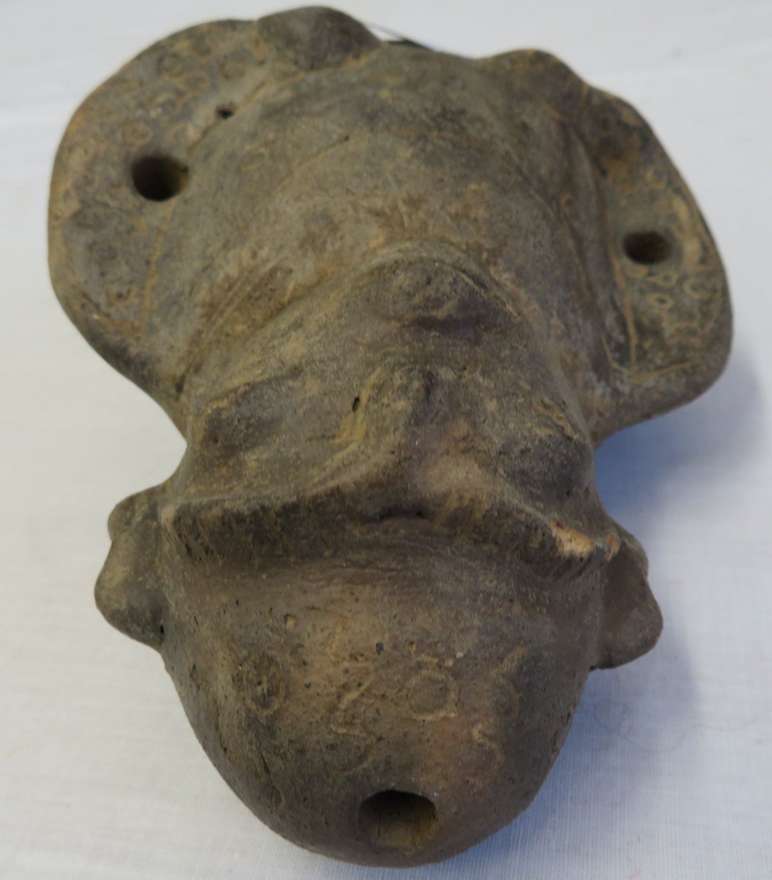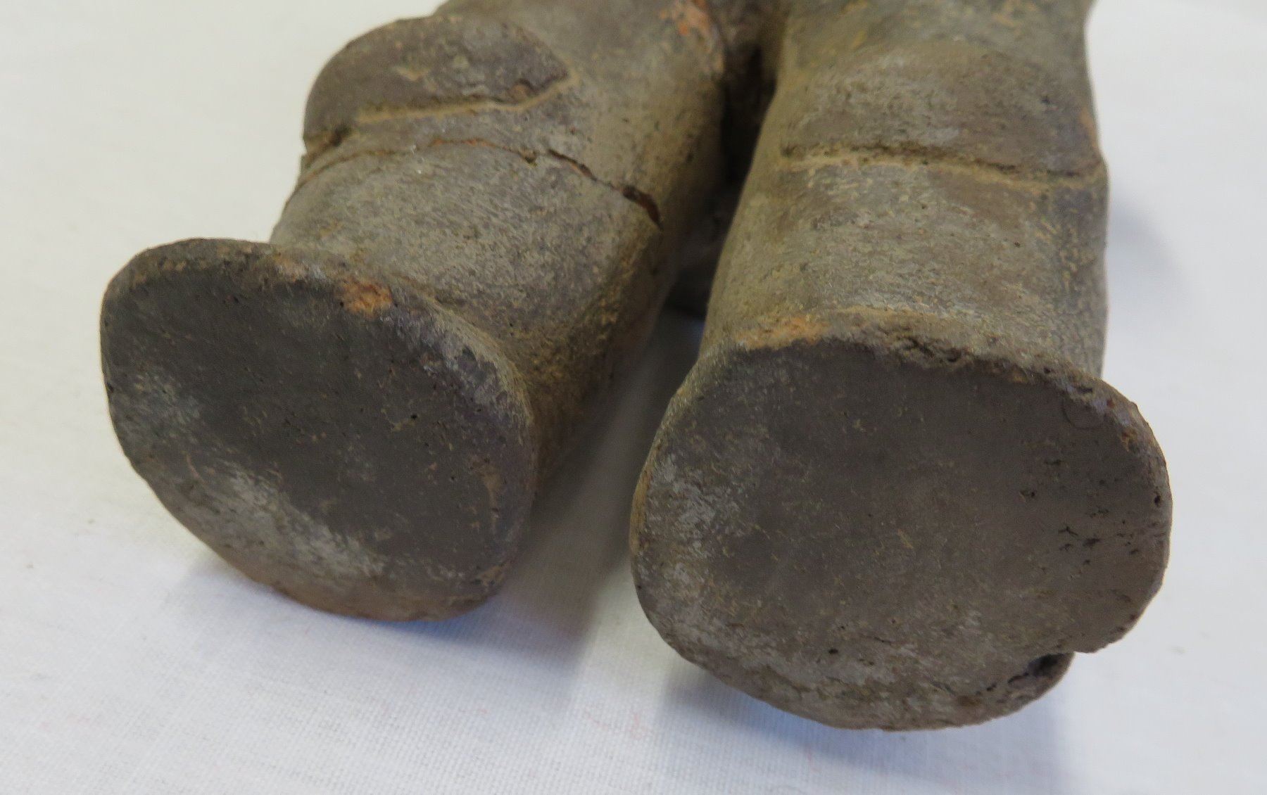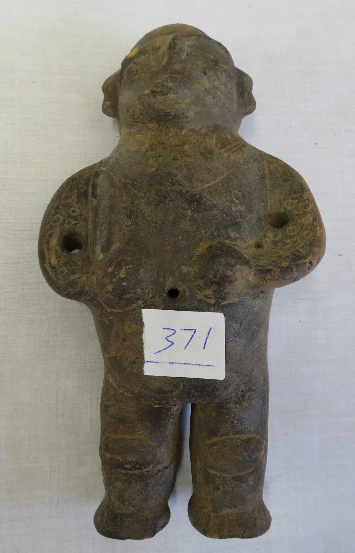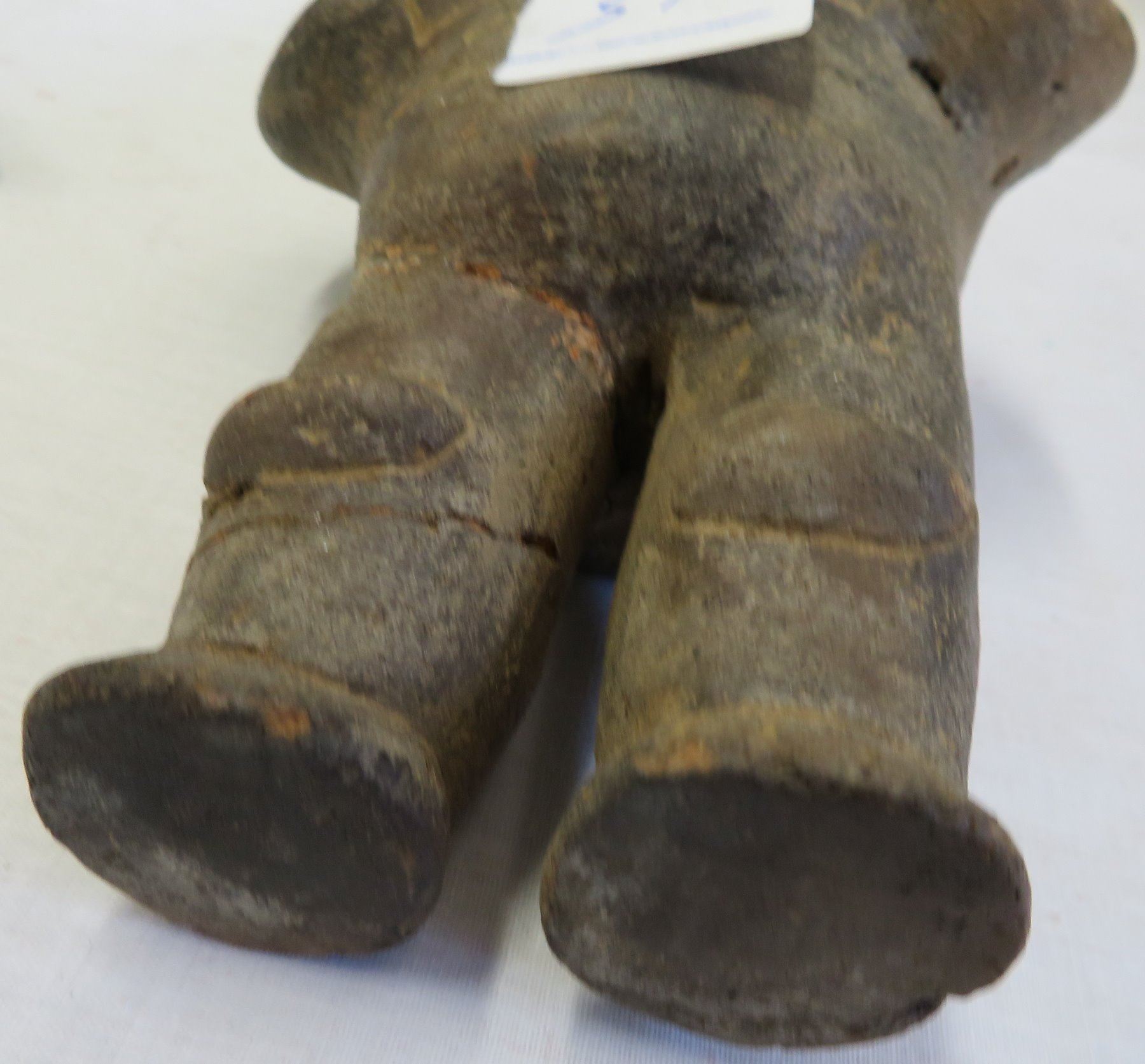 Pre-Columbian Human Figure, pre-Columbian item. Made of clay, the item measures 8 1/2" x 4 1/2" x 3". Nayarit, Mexico. Condition: Leg broken and reattached, see images. Shipping: $26.50 w/insurance and signature, double-boxed, due to value.