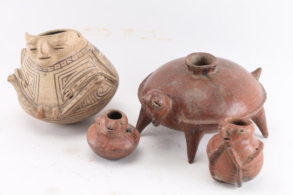 4 Clay Figural Pots. From the Steve Goldstein Collection, Scottsdale, AZ.