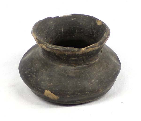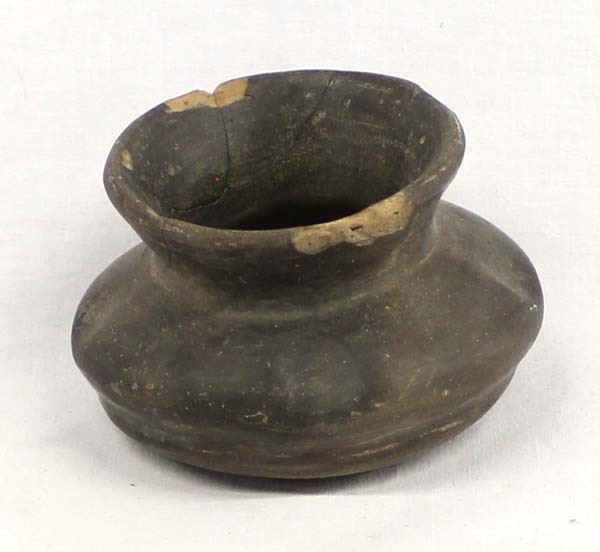 Pre Columbian Mayan Pottery Jar, measures 2'' x 4'', chipping in rim and chip in body
