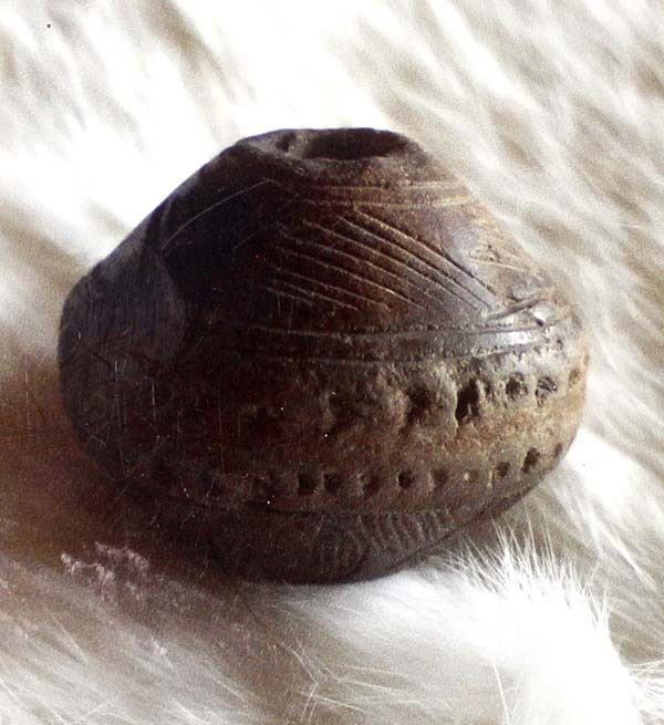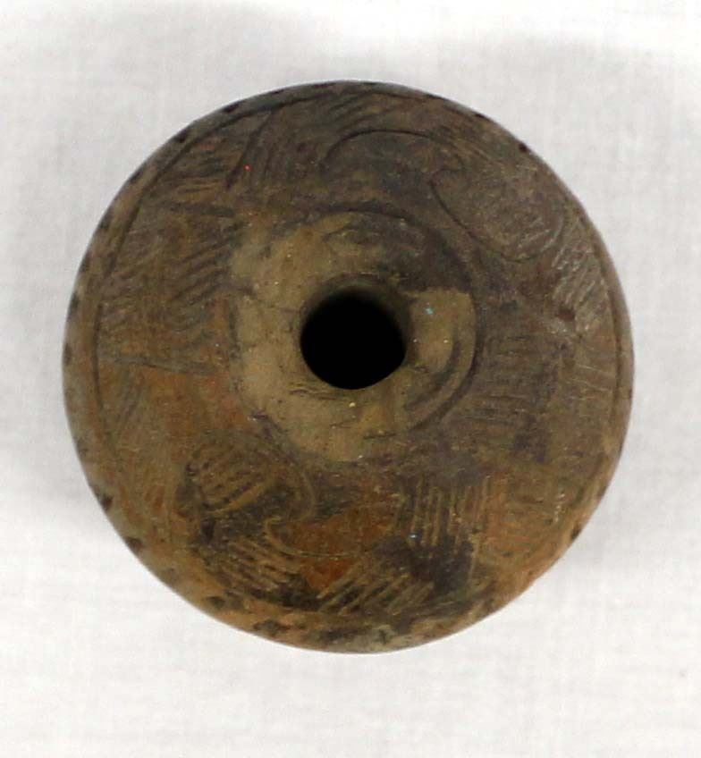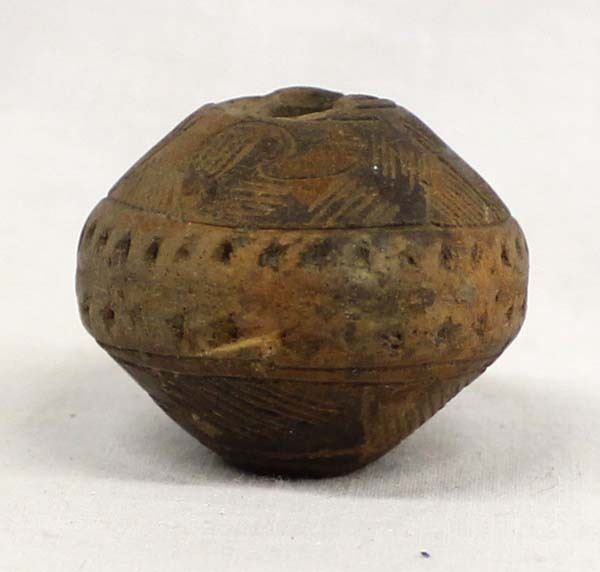 Pre Columbian Mayan Pottery Spindle Whorl, measures 1'' x 1''