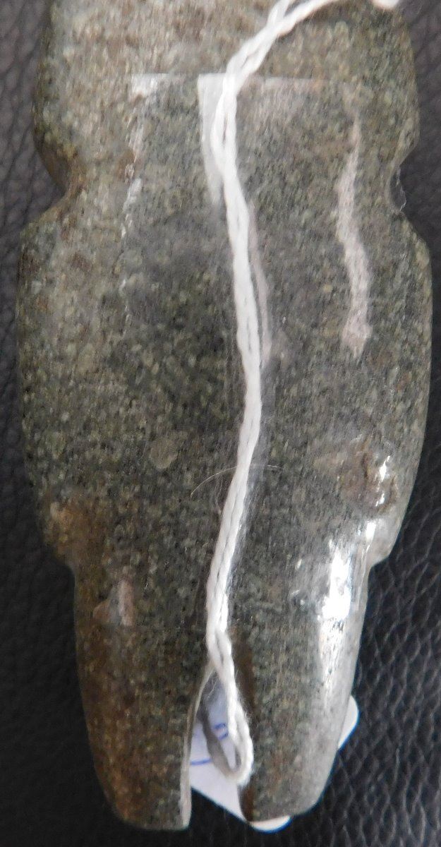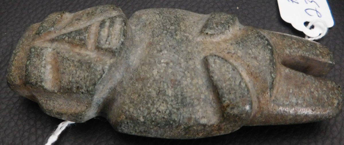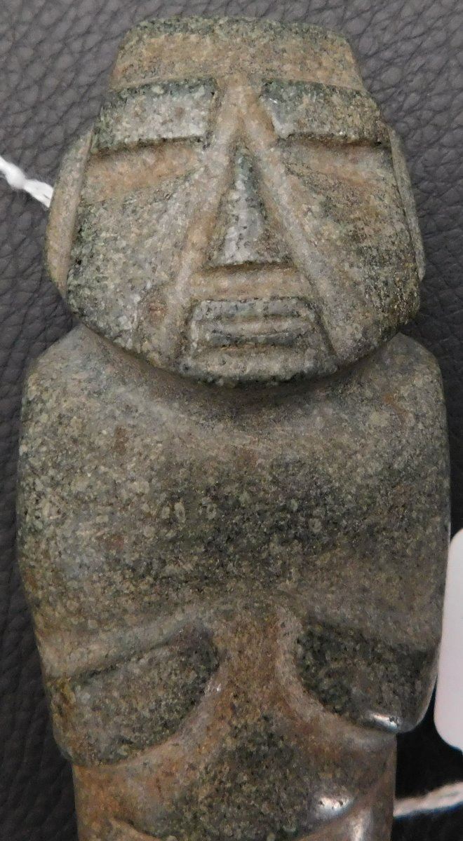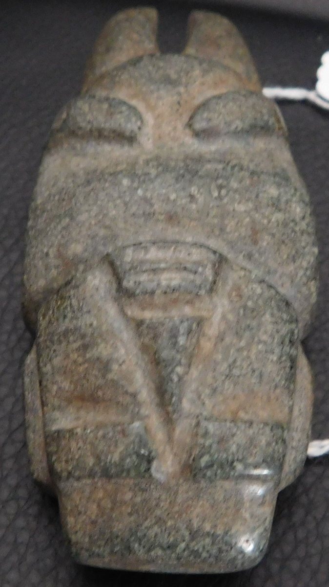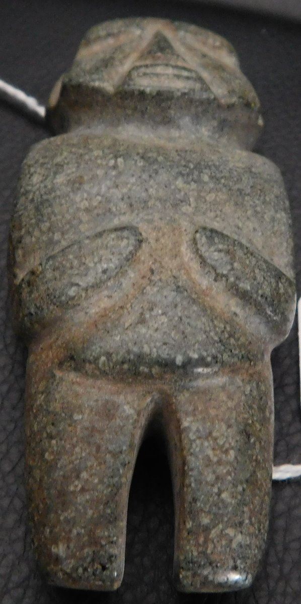 Pre-Columbian Mezcala Figure w/Helm COA, circa 2500 years old. Made of basalt and measuring 3.5" x 1.5" x 1.5". Guerrero, MX. Museum quality piece with investment value, w/Helm Certificate of Authenticity. From an old, 1960s California collection. Condition: Very good, nice polish, see images. Shipping: $22.50 w/insurance and signature, due to value.
