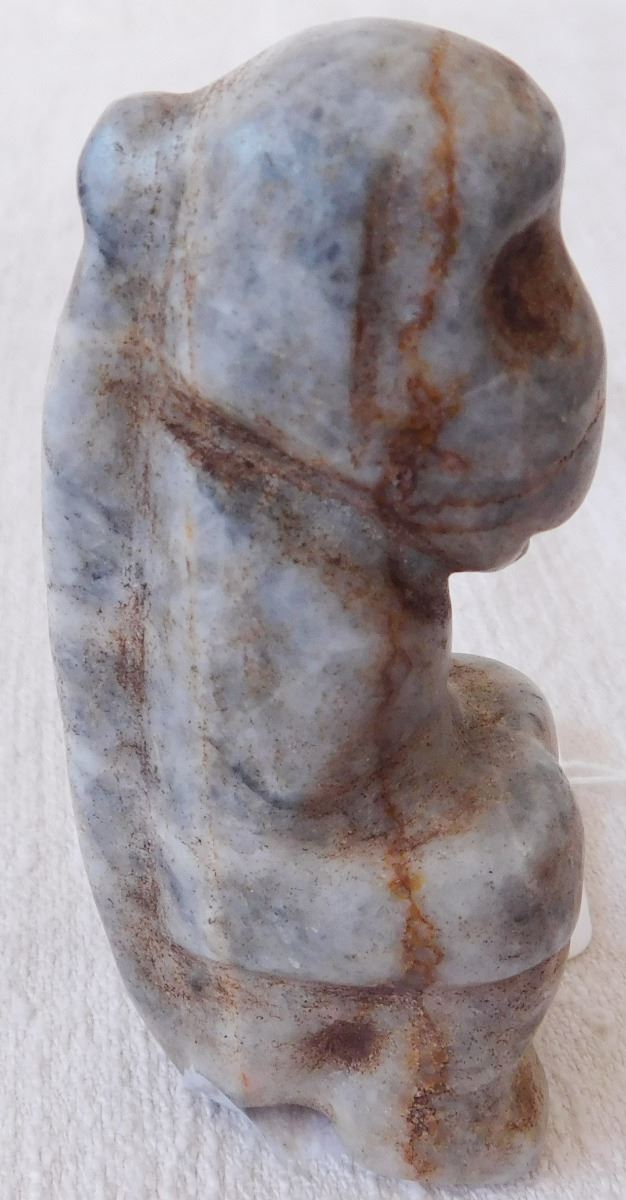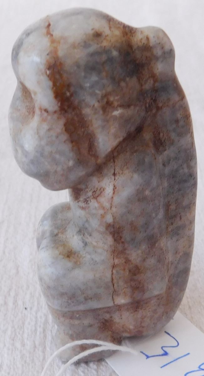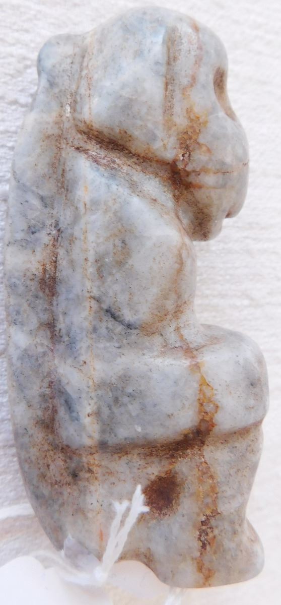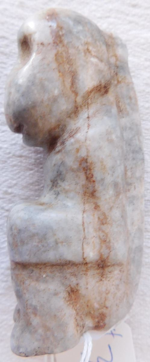 Pre-Columbian Mezcala Monkey Figure, circa 2500 years old. Believed to be made of onyx, the item measures 3.75" x 1.75" x 1.5". From Mezcala River, Guerrero, MX. Unusual Mezcala monkey figure. From an old, 1960s California collection. Condition: As found, see images. Shipping: $20.00 w/insurance and signature.