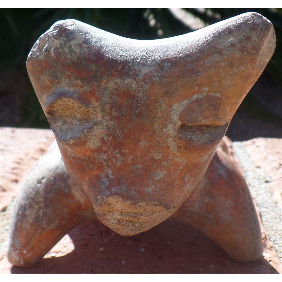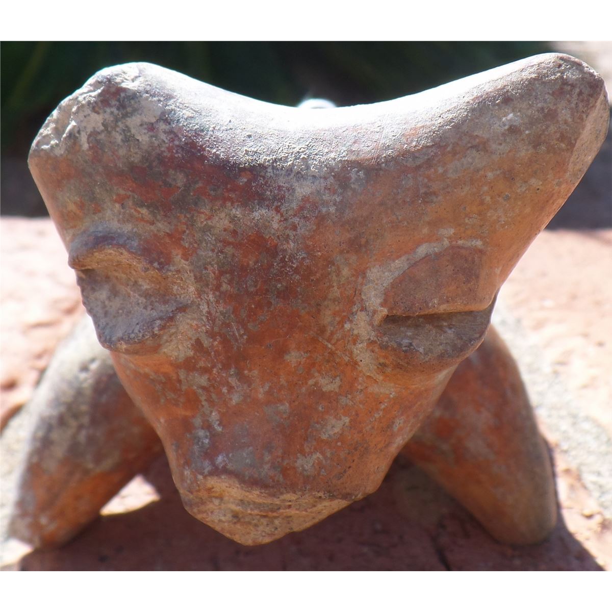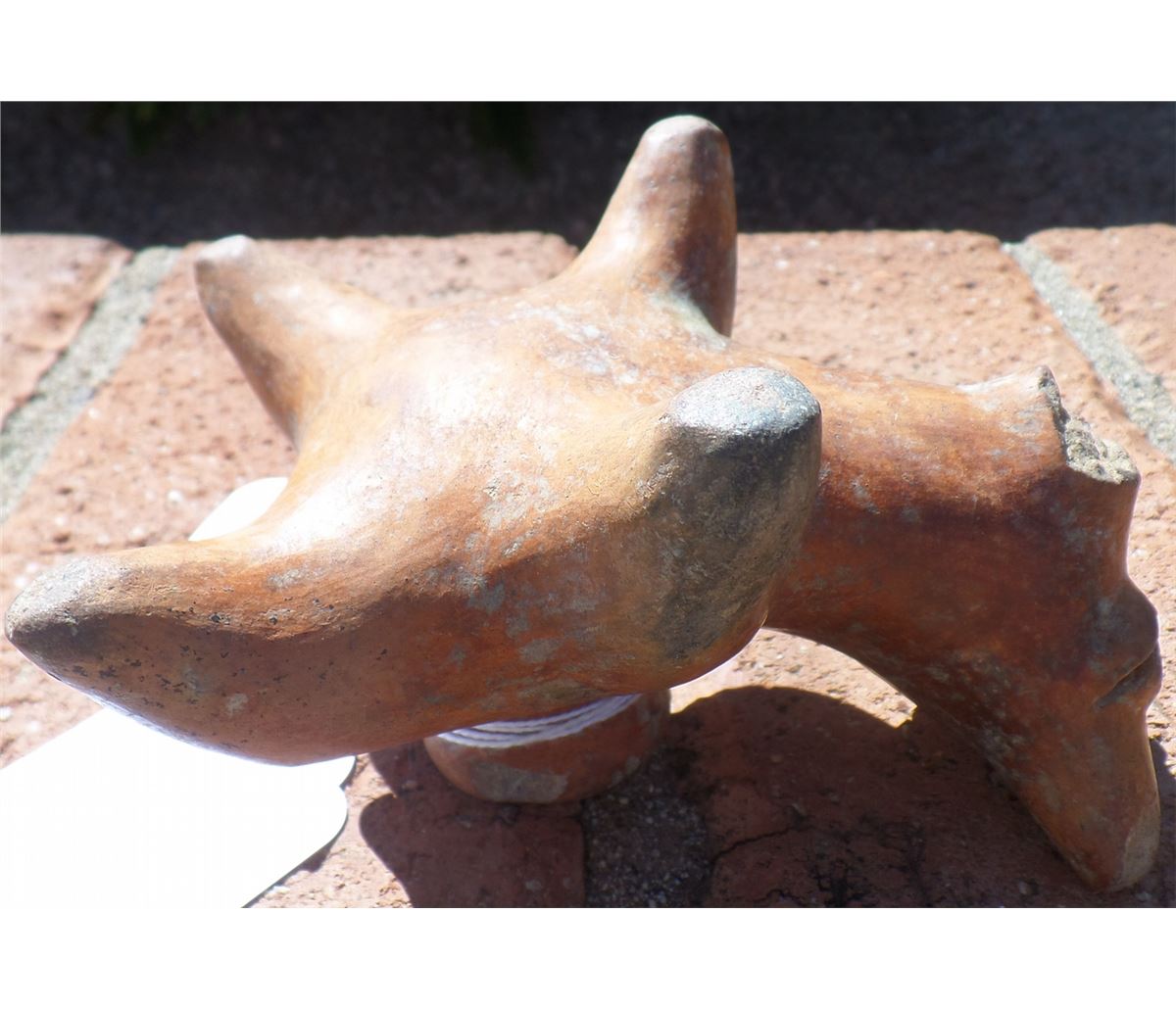Pre-Columbian Nayarit Dog. C. 1500 years old. Made of clay and measures 5" x 3.5" x 3.5". Pre-Columbian item from Mexico, state of Nayarit. Good patina on this old piece. Condition: Nicks and scratches, head has damage to one ear, see images. Shipping: $14.50.