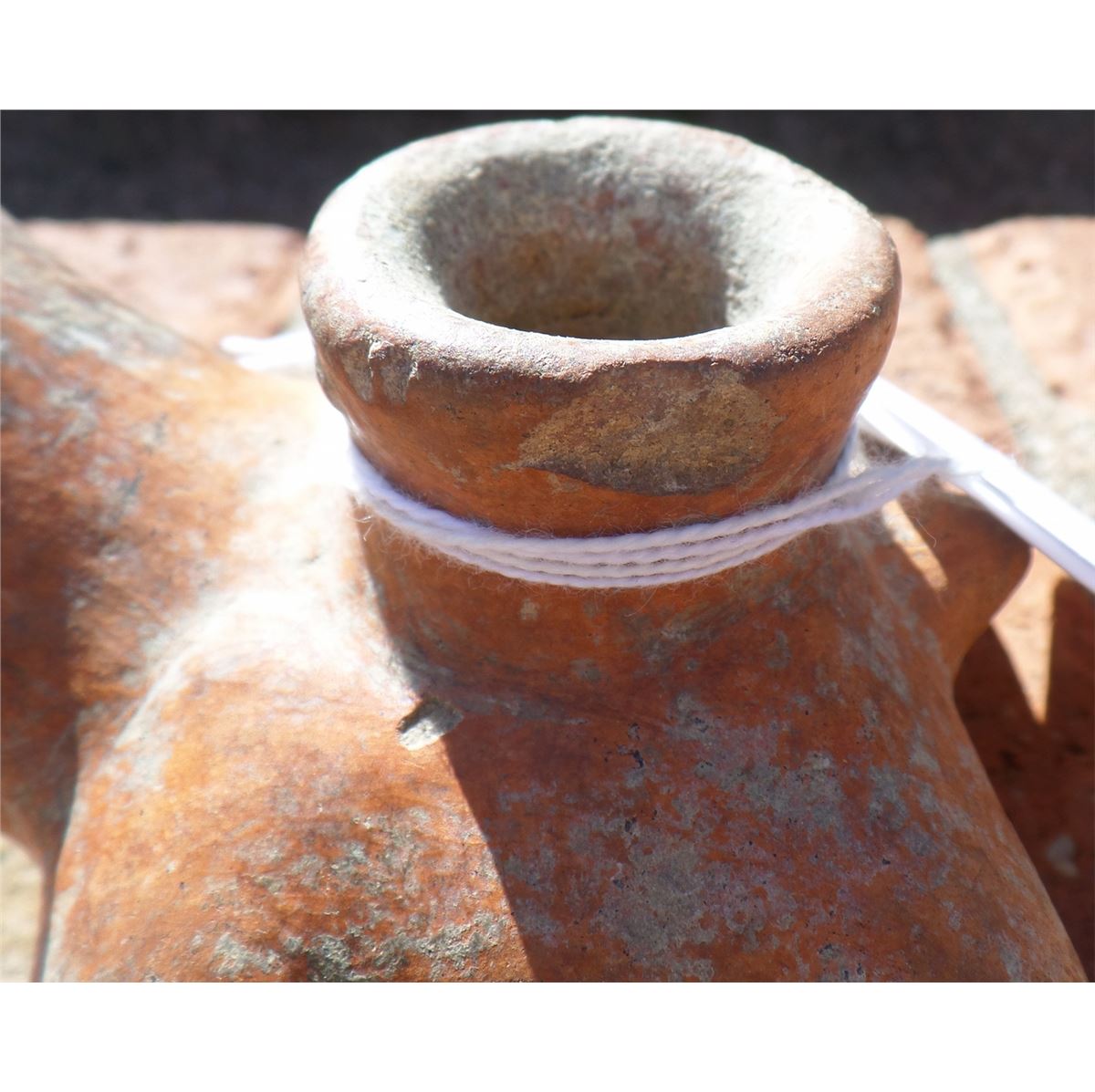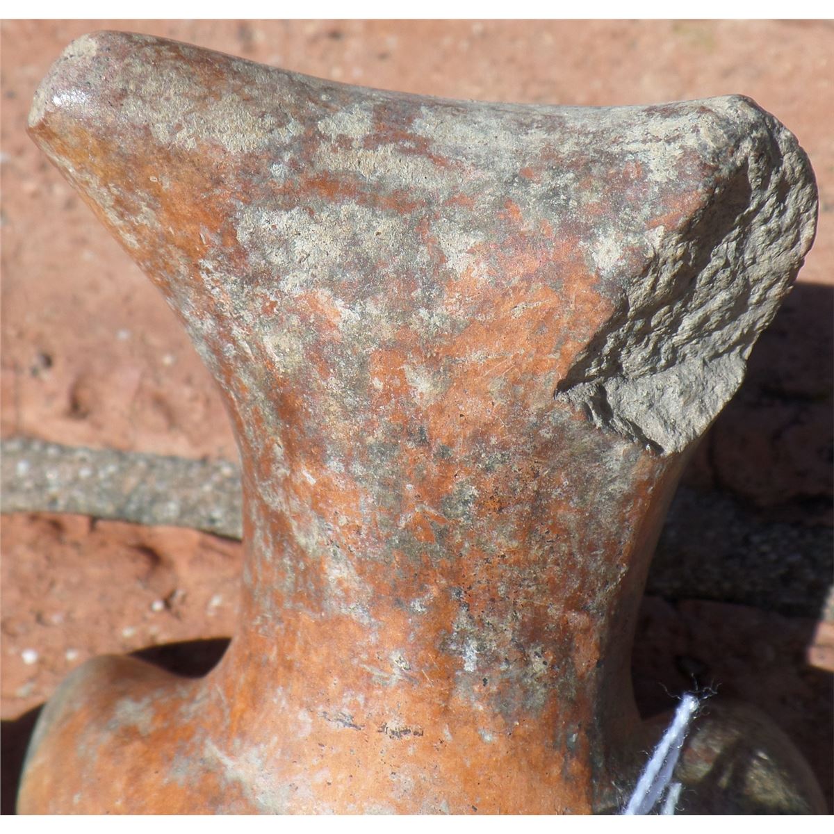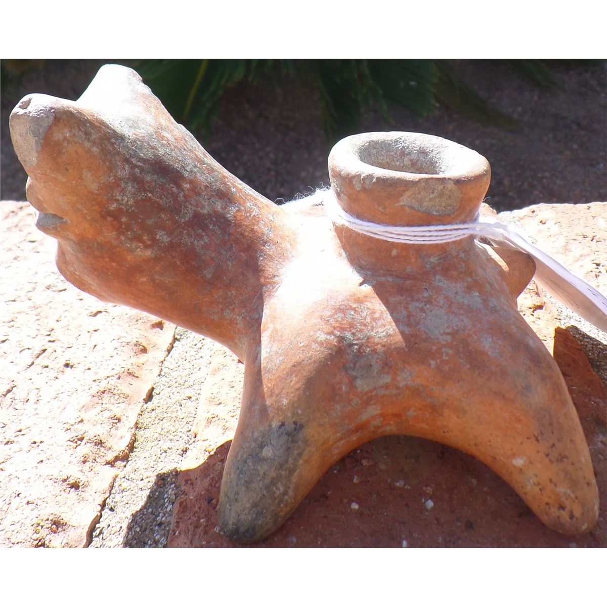 Pre-Columbian Nayarit Dog. C. 1500 years old. Made of clay and measures 5" x 3.5" x 3.5". Pre-Columbian item from Mexico, state of Nayarit. Good patina on this old piece. Condition: Nicks and scratches, head has damage to one ear, see images. Shipping: $14.50.