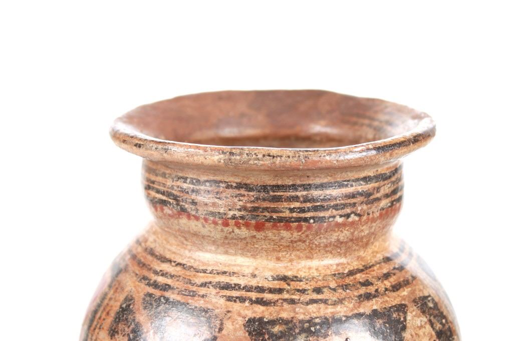Included in this lot is a Nazca Polychrome Ceramic Bowl / Vase. Pre-Columbian, Southern Peru, Nasca, 400 to 700 CE. The Nazca culture (also Nasca) was the archaeological culture that flourished from c. 100 BC to 800 AD. Strongly influenced by the preceding Paracas culture which was known for extremely complex textiles, the Nazca produced an array of crafts and technologies such as ceramics, textiles, and geoglyphs. The Nazca culture is characterized by its polychrome pottery which has been divided into nine phases. During "Nazca 8", disjointed figures and a geometric iconography was introduced that has been difficult to decipher. Phases 8 and 9 are now believed to date to the Middle Horizon. This period was one of a shift in power from the coast to the highlands with the advent of the Wari culture about 650 AD. The Nazca, like all other Pre-Columbian societies in South America including the Inca, had no writing system, in contrast to the contemporary Maya of Mesoamerica. The iconography or symbols on their ceramics served as a means of communication. The motifs depicted on Nazca pottery fall into two major categories: sacred and profane. The Nazca believed in powerful nature spirits who were thought to control most aspects of life. The Nazca visualized these nature spirits in the form of mythical beings, creatures having a combination of human and animal/bird/fish characteristics, and painted them onto their pottery. These Mythical Beings include such varieties as the Anthropomorphic Mythical Being, Horrible Bird, Mythical Killer Whale, Spotted Cat, Feline Man and Rayed Face. This Nazca bowl features geometric and bird motifs, colours of red, black, and white. Remarkably very nicely preserved condition, fading of designs and colours from normal usage and age. Measures 5.75"H x 6" diameter, mouth 4.5" diameter, weight 1lb, 4oz.