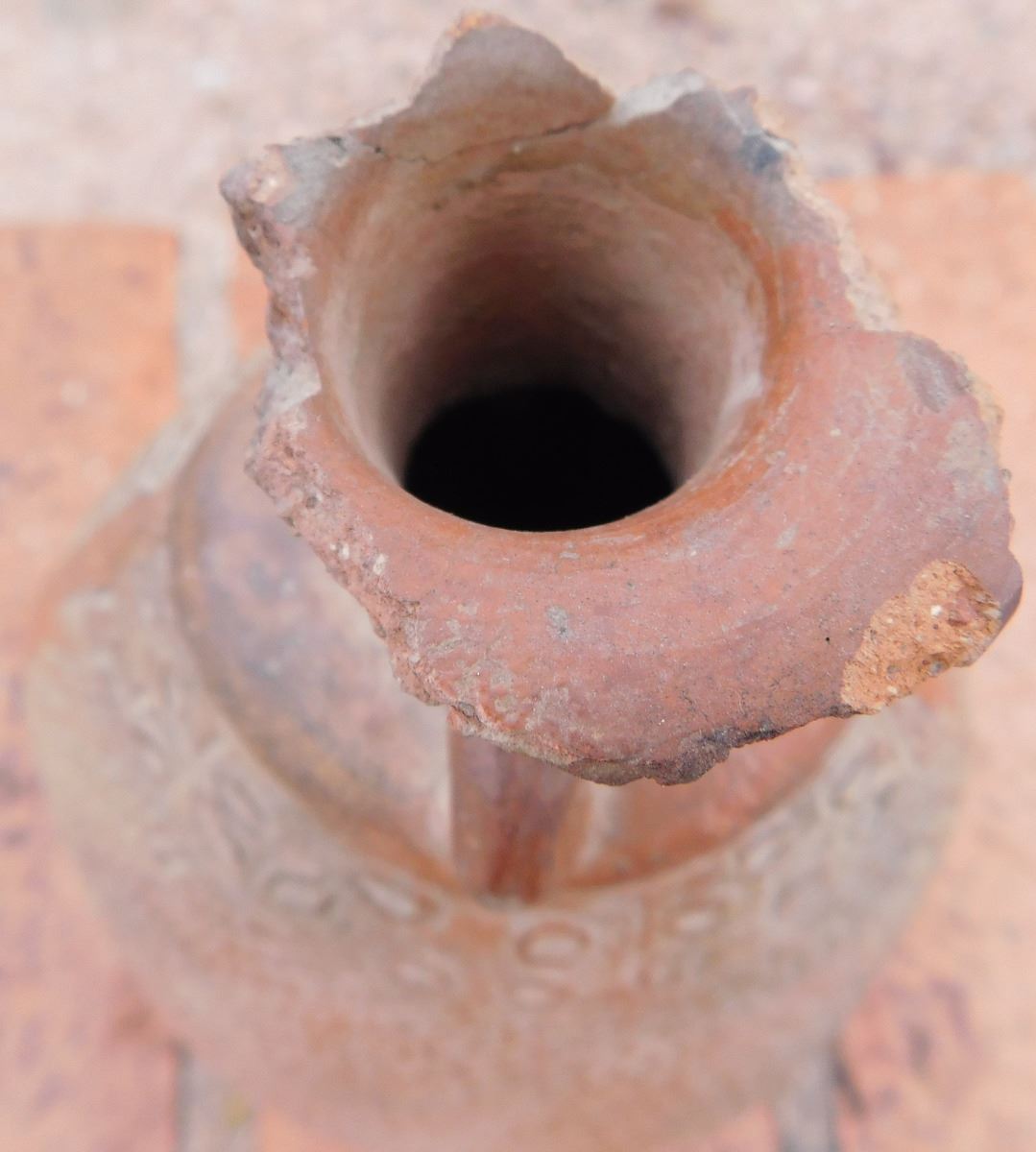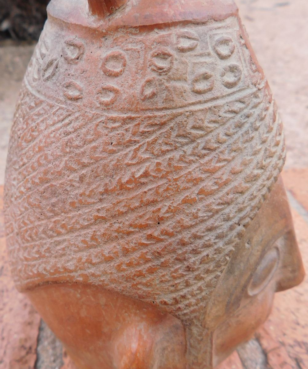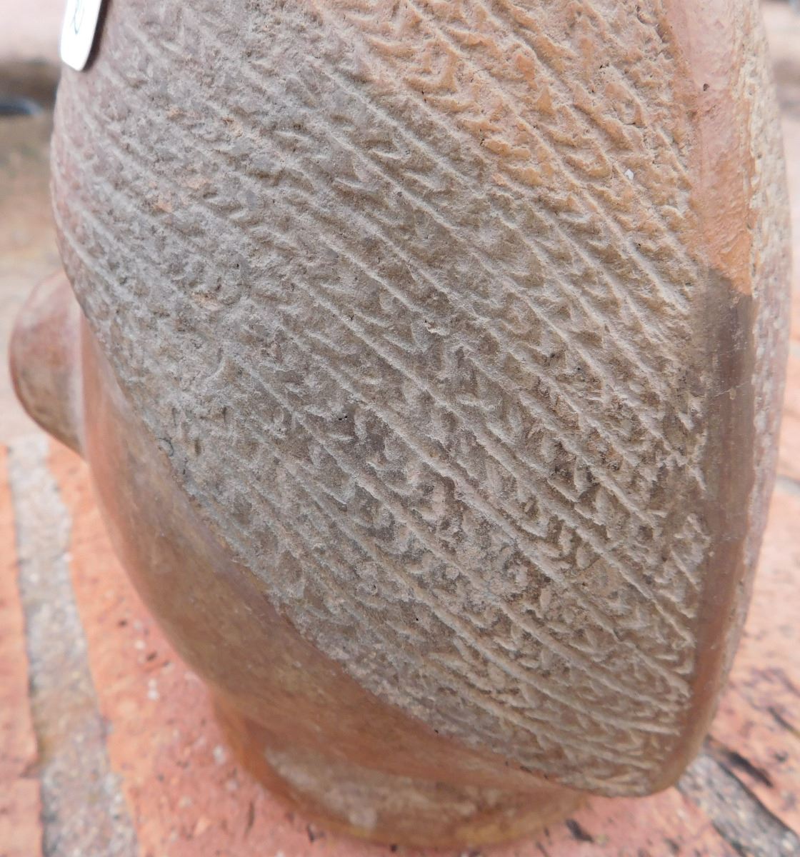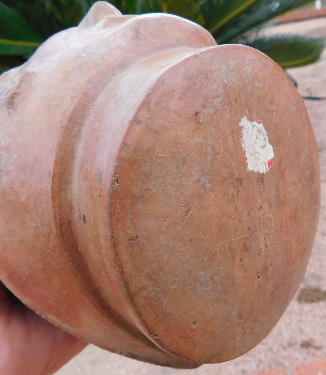 Pre-Columbian Pottery Vessel, circa 1200 years old. Made of clay, the item measures about 5.5" x 6" x 9". From Bolivia. Condition: As found, damage to lip, see images. Shipping: $27.50 double-boxed, w/insurance and signature.
