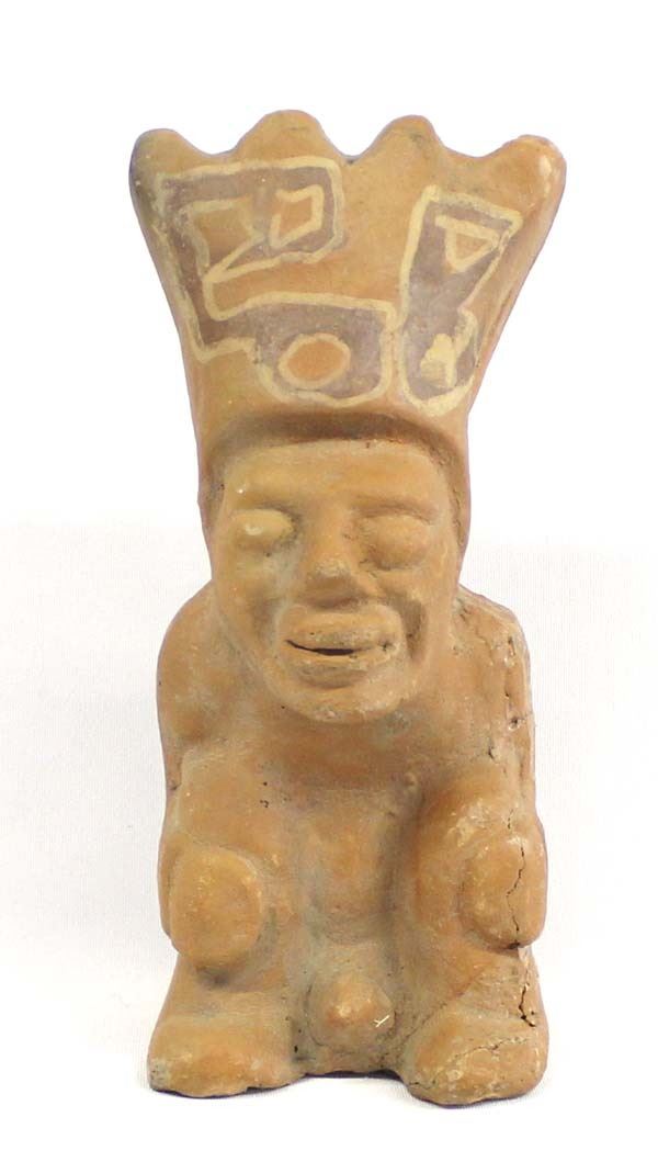 Pre-Columbian Replica Idol, 4'' X 4'' X 9'', some cracking and has been glued