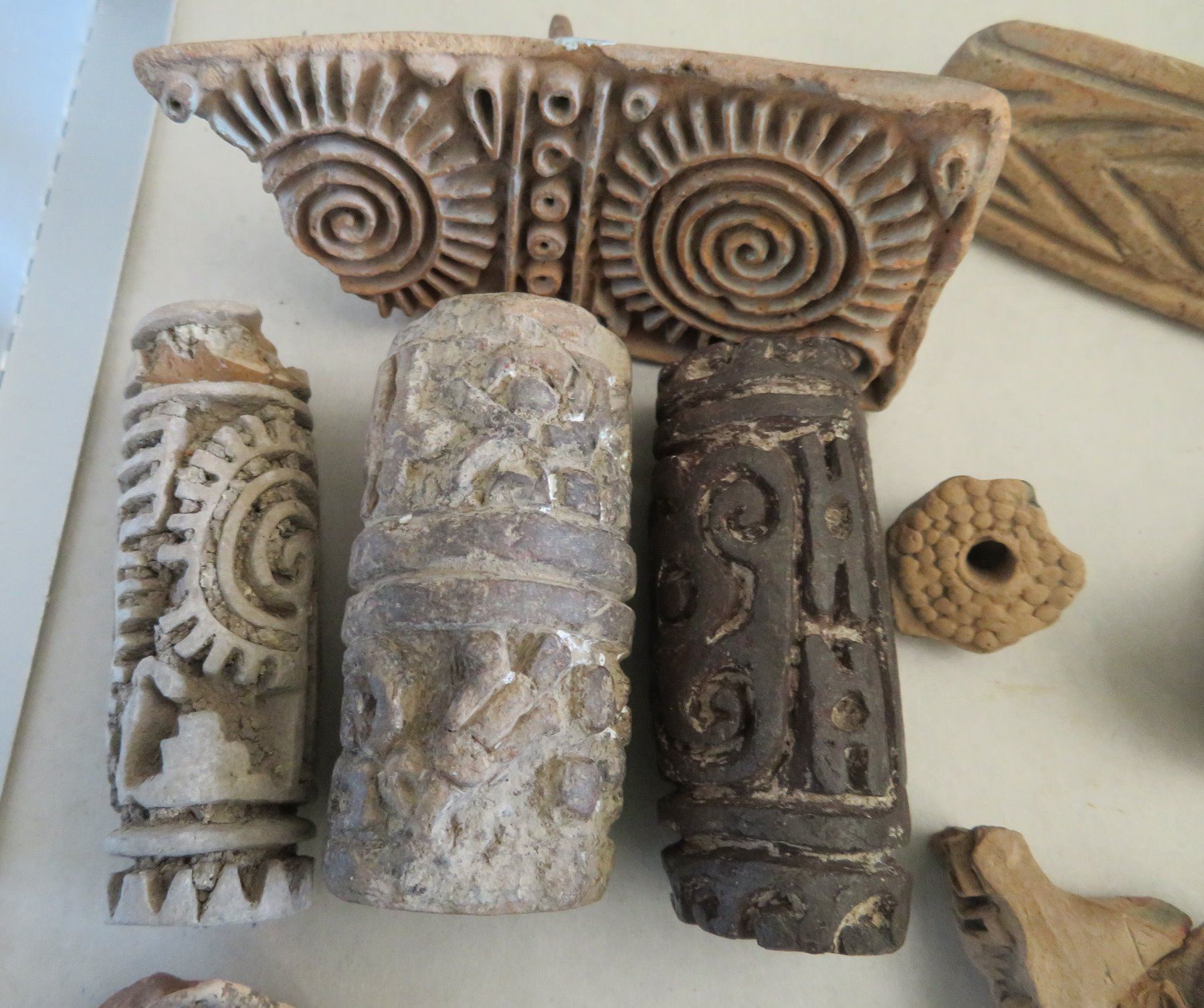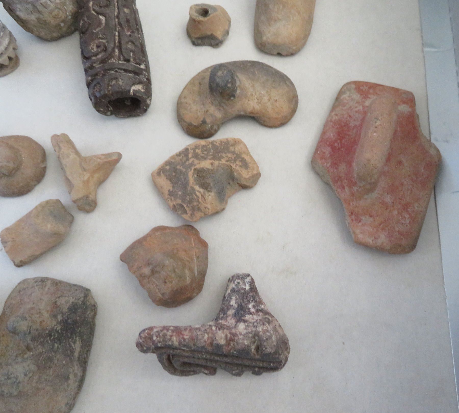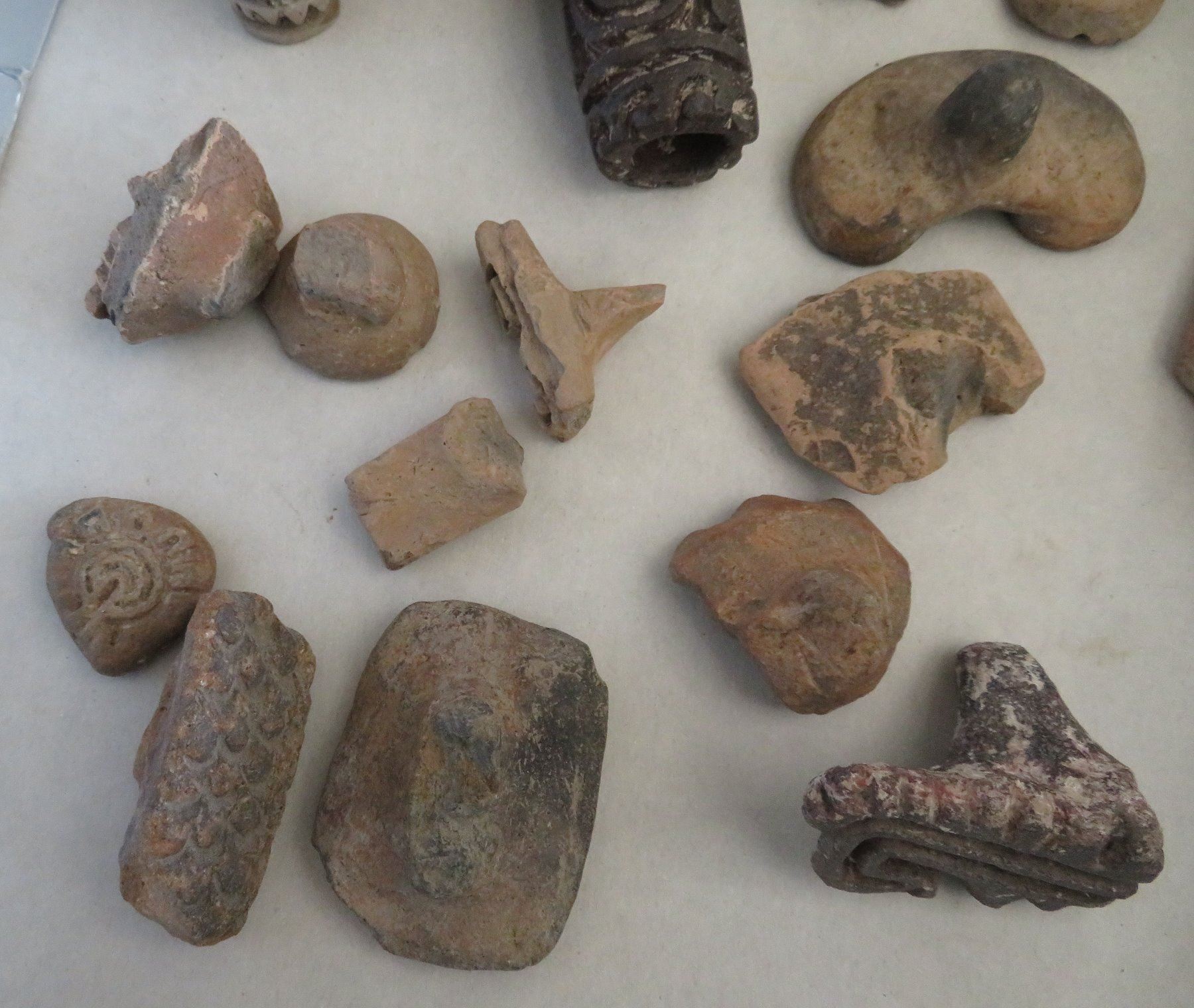 Pre-Columbian Stamp & Seal Collection, pre-Columbian items. Made of clay, the items measure from 1" to 3 3/4". Veracruz, Mexico. Condition: As found, see images. Shipping: $18.50 w/insurance and signature.