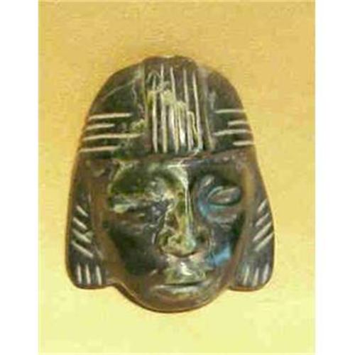 This well Crafted pendent is done in a very realistic style. The headdress with incising and hair on the sides show a high level of skill. The back is scooped out and has a hole for hanging. Probably used as an ornament by chiefs or priest in ancient rites.