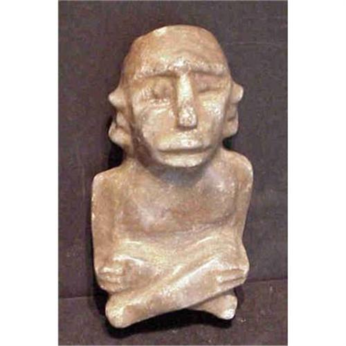 A Highly expressive stone figure. Probably this has its roots springing from the famous Olmec culture. Very detailed for a stone this hard. The stone its self has quartz like flakes glistening on the figure. A very nice piece.