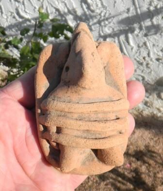 Pre-Columbian Figure of a person strapped to a bed. The person may depict a prisoner or patient and is probably Colima 500 to 1000 AD
