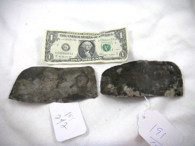 Pre-Columbian silver pectorals with heavy tarnish. Items are from Peru and measure 2 x 5 inches. Shipping $14.50