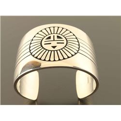 All Heavy Sterling, Maker Marked. Sterling cuff with Kachina sunface design maker marked by Dalangyamwa multiple award winner silversmith. From the Sp