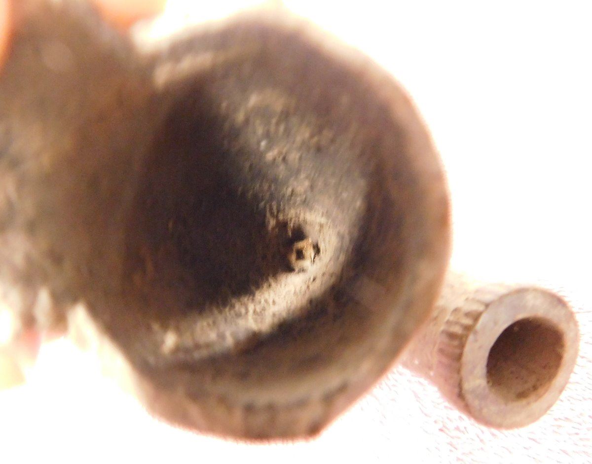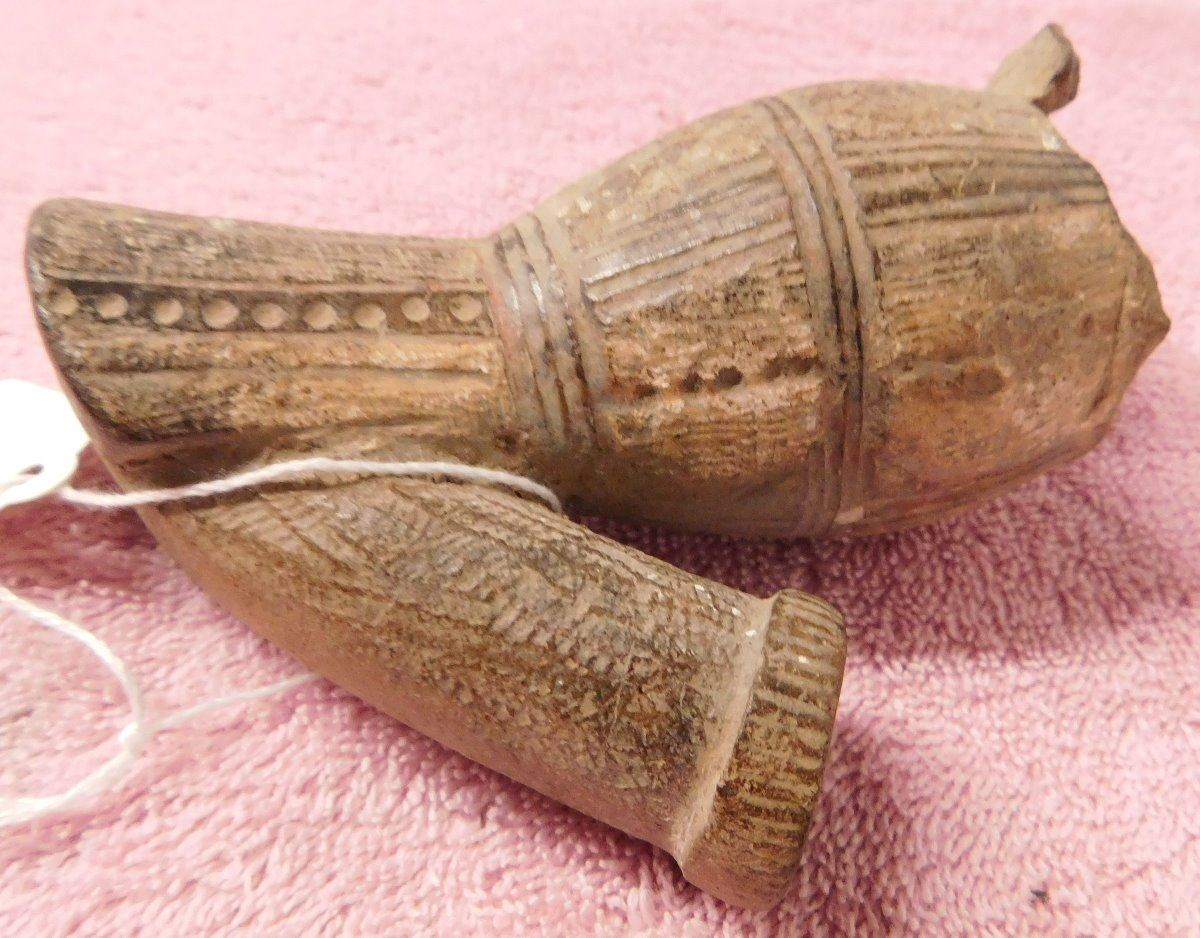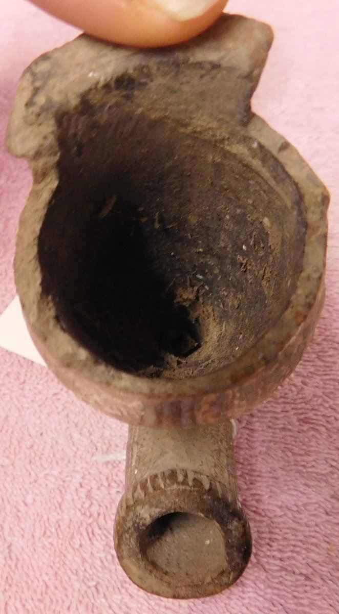 Pre-Historic African Pipe, circa 2000 years old made of clay and measuring 3" x 2.5" x 4.25". From Mali. Nice old pipe. Condition: Some lip damage with nice engraving, see images. Shipping: $22.00 w/insurance and signature.