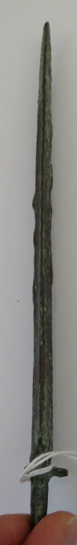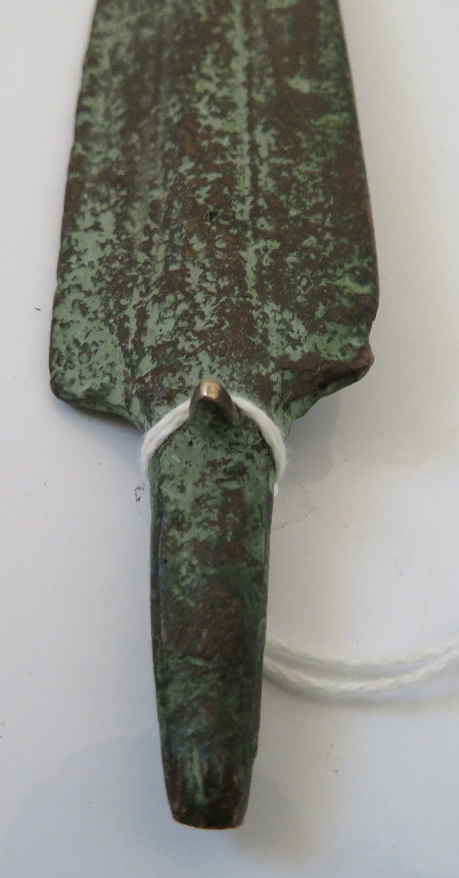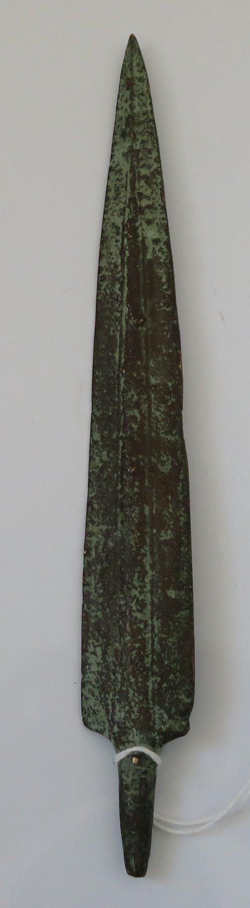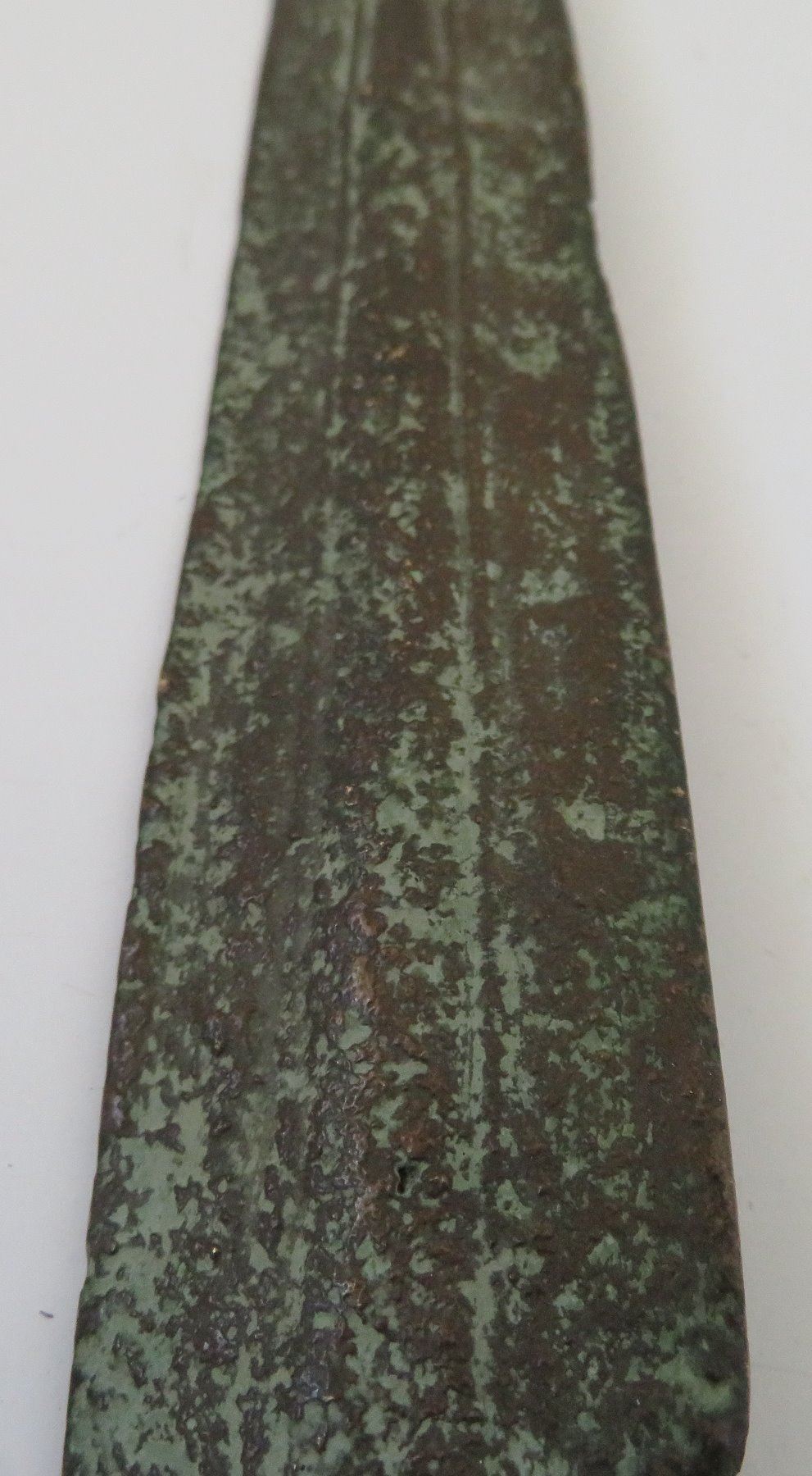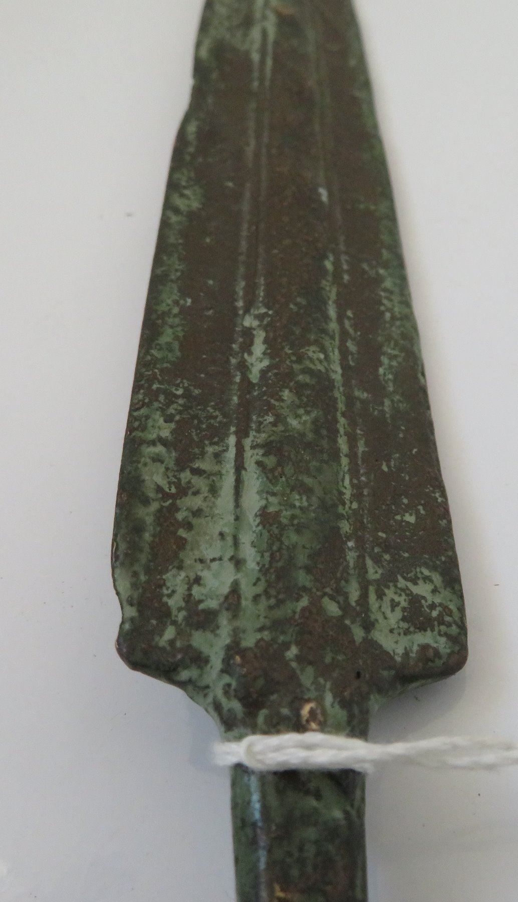 Pre-Historic Bronze Spearpoint, c. 1700s. Made of bronze, the item measures 10" x 1 1/4". Luristan, Iraq-Iran region. Middle Eastern bronze spearhead. Condition: Excellent, good signs of patination and wear, see images. Shipping: $25.00 w/insurance and signature, due to value.