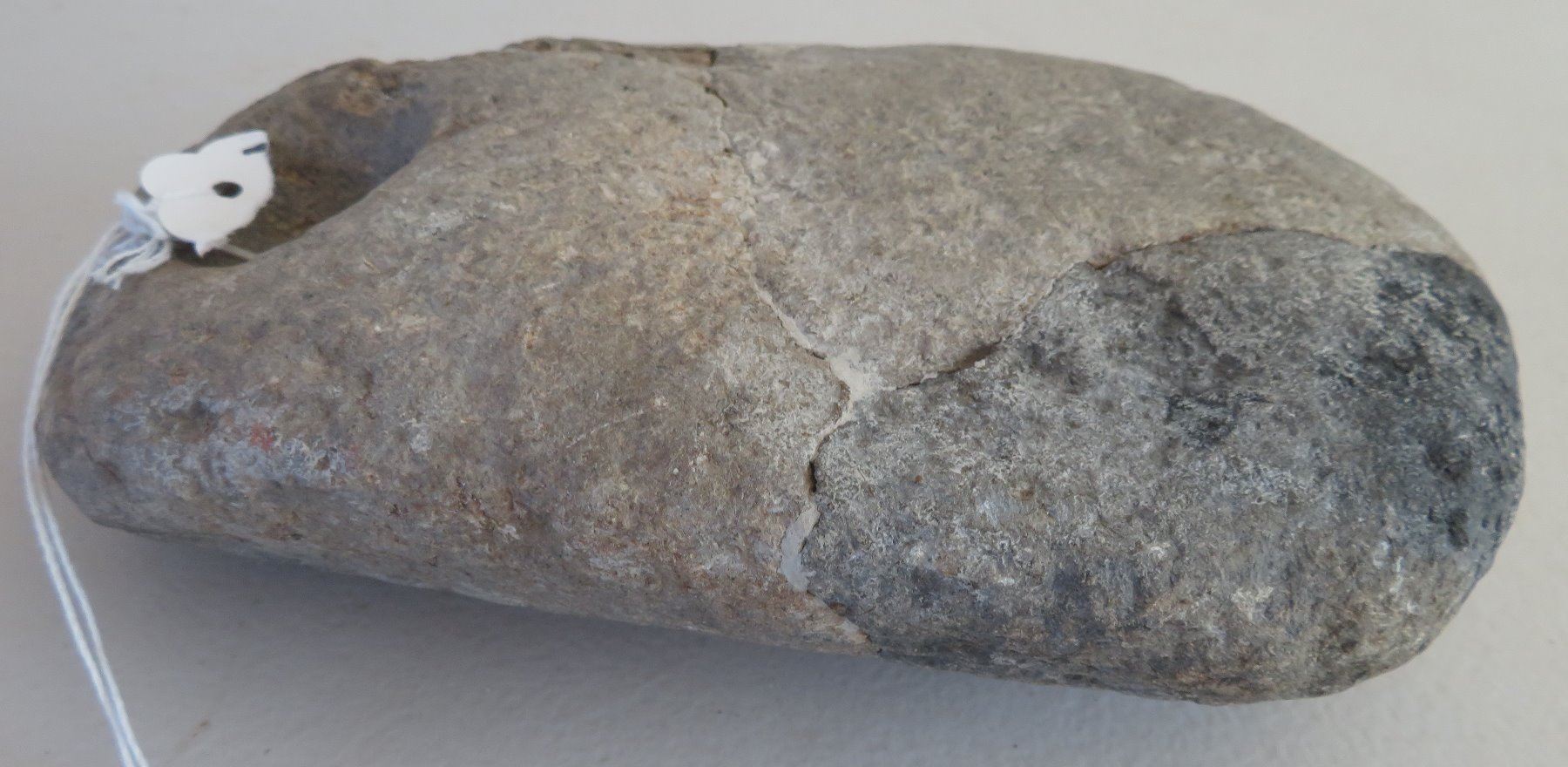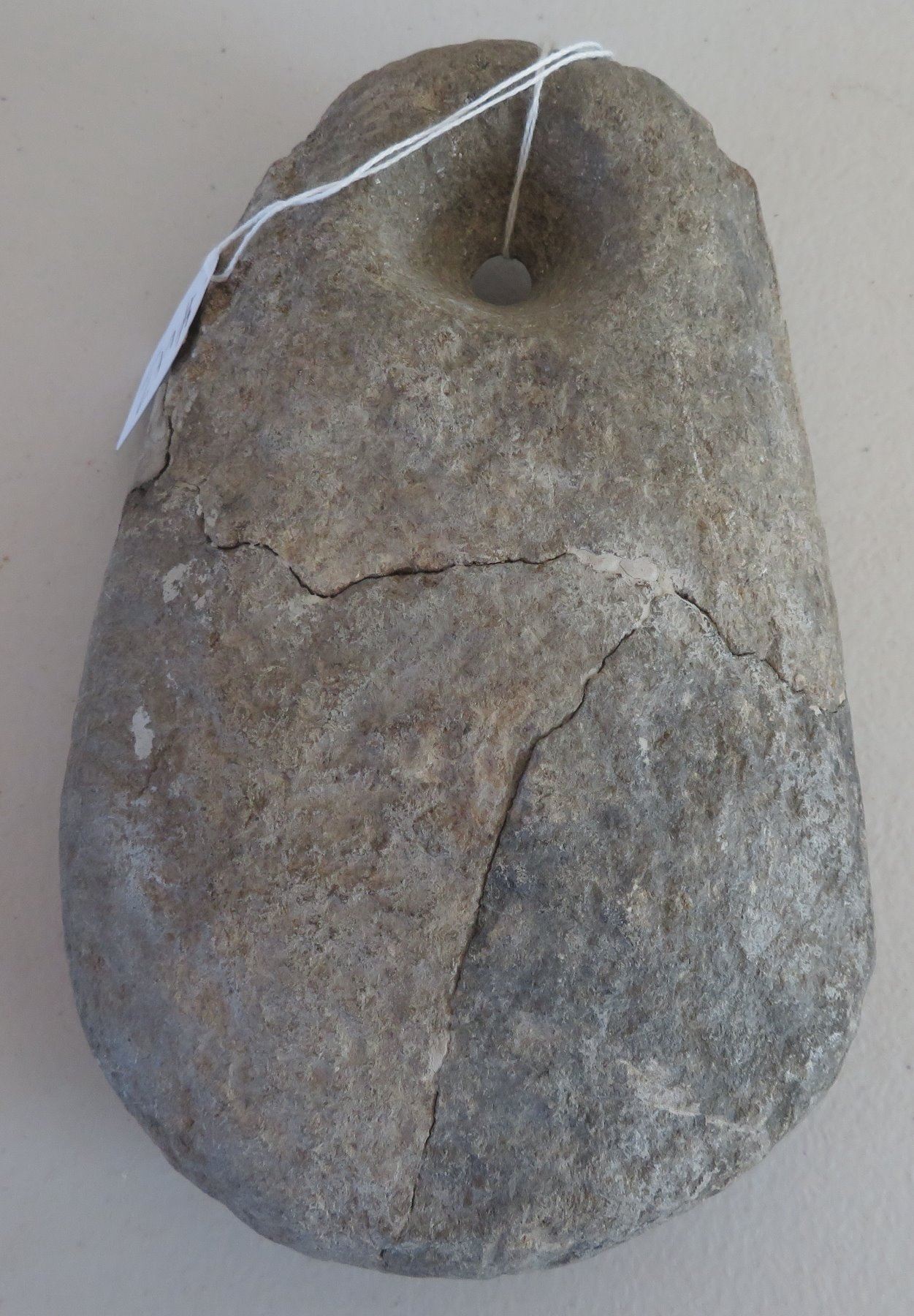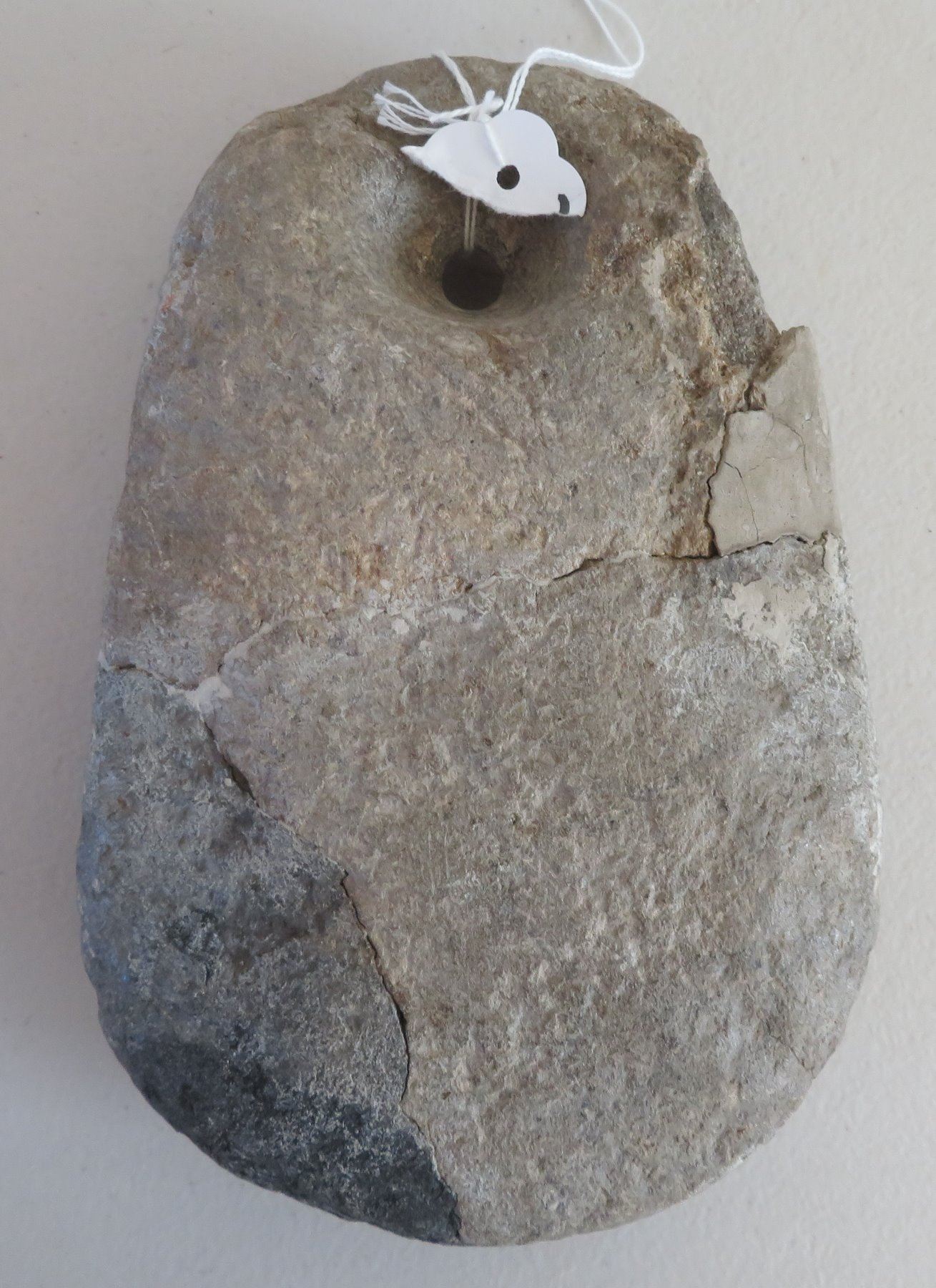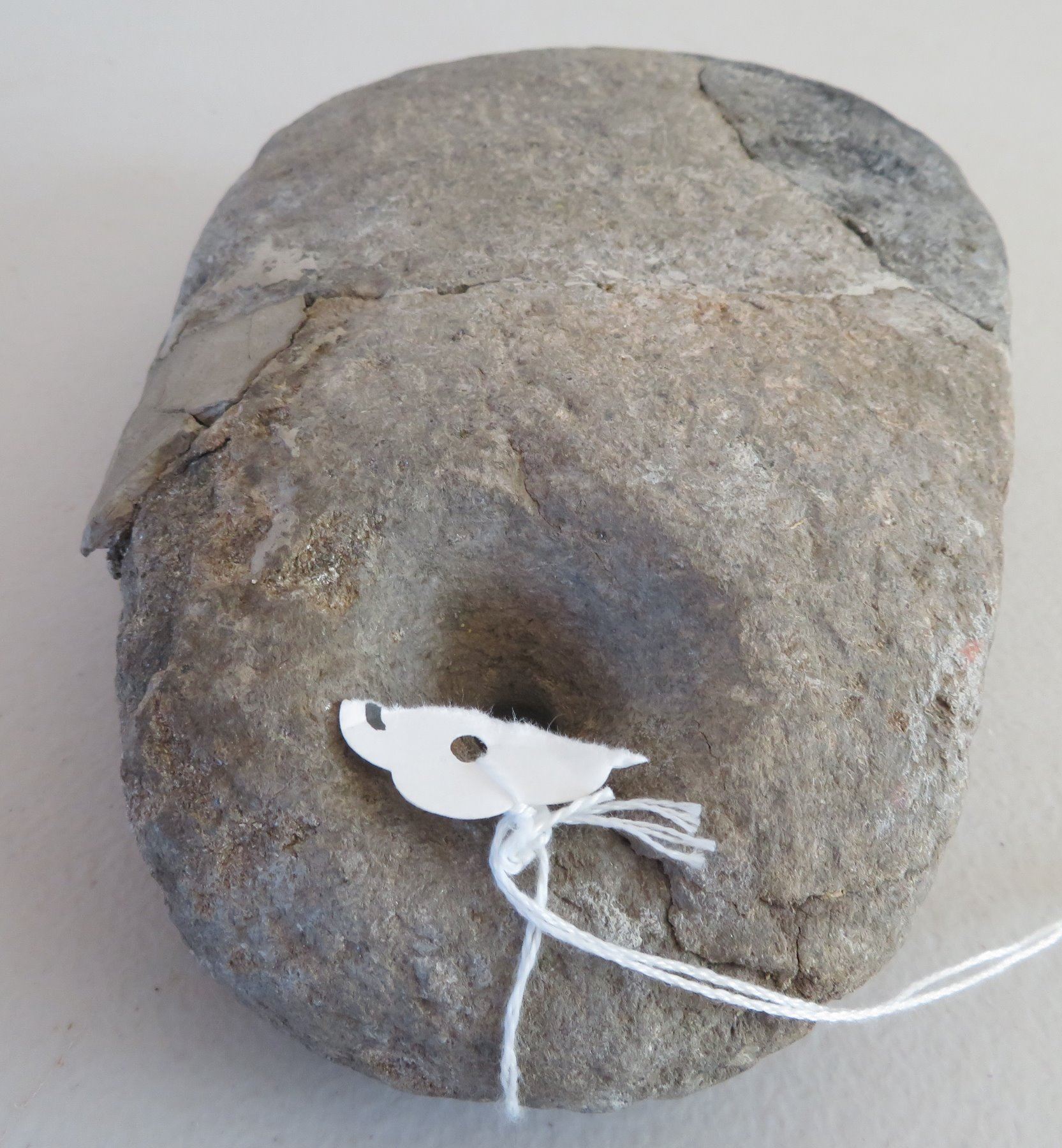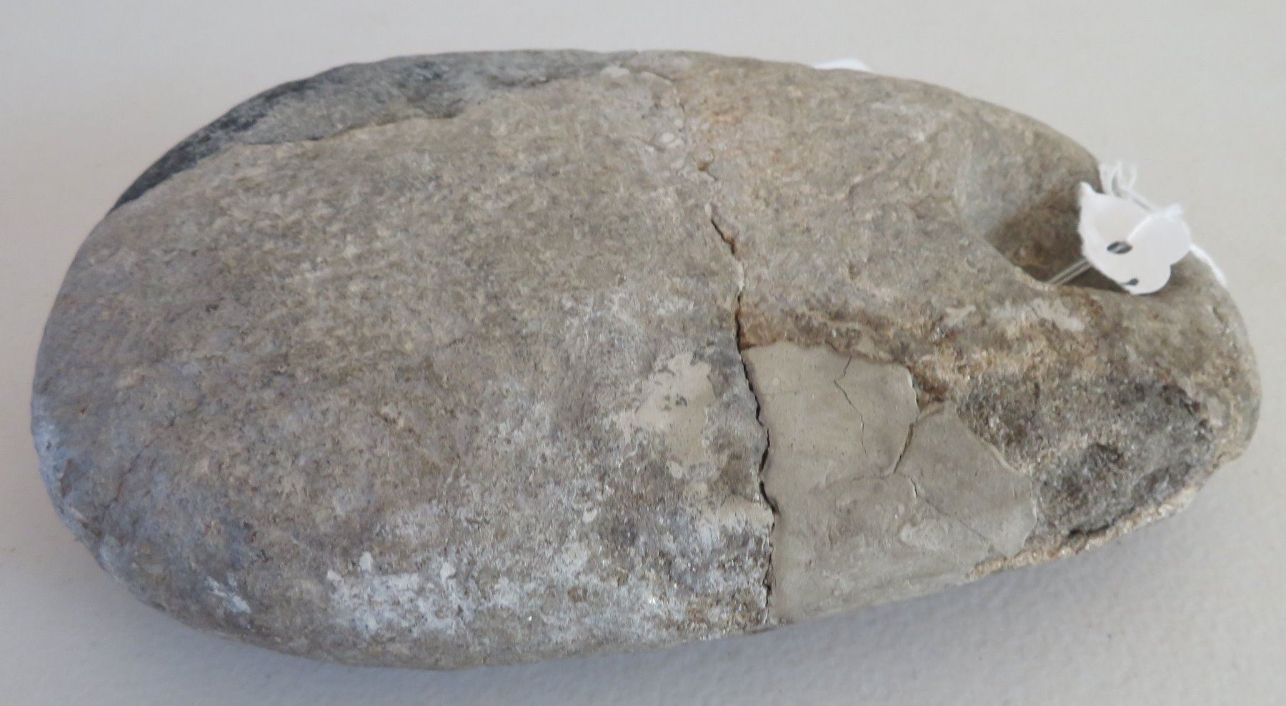 Pre-Historic Medicine Stone, pre-historic item. Made of steatite, the item measures 8" x 5 1/2" x 2 1/2". San Diego County, California. Heating stone. Condition: Old repair, see images. Shipping: $30.00 w/insurance and signature, due to value and weight.