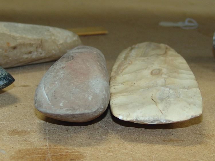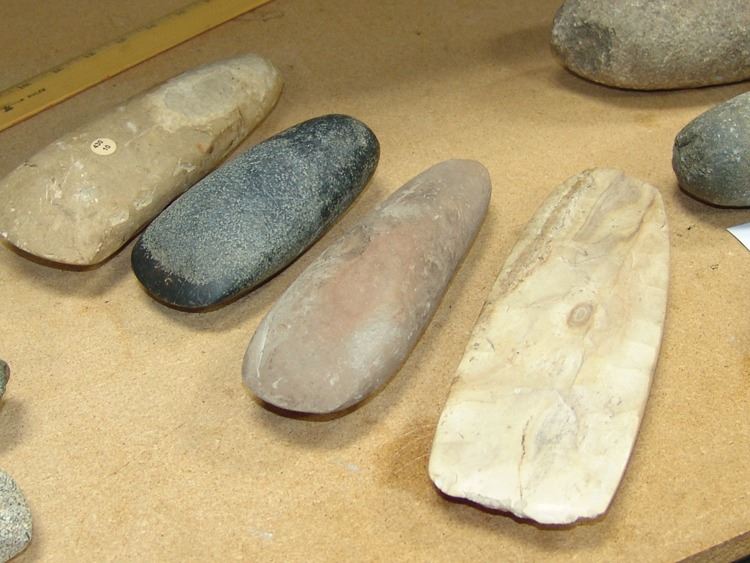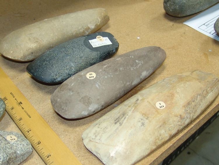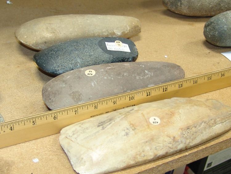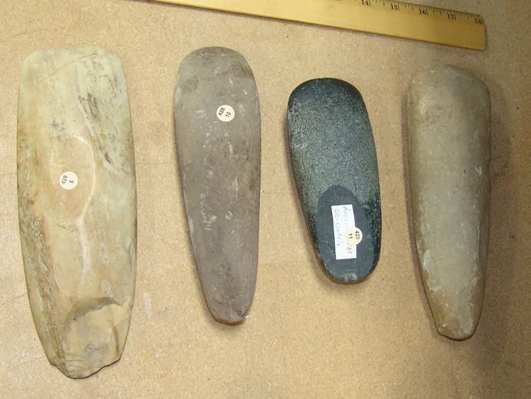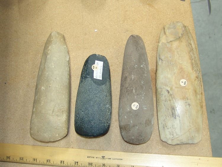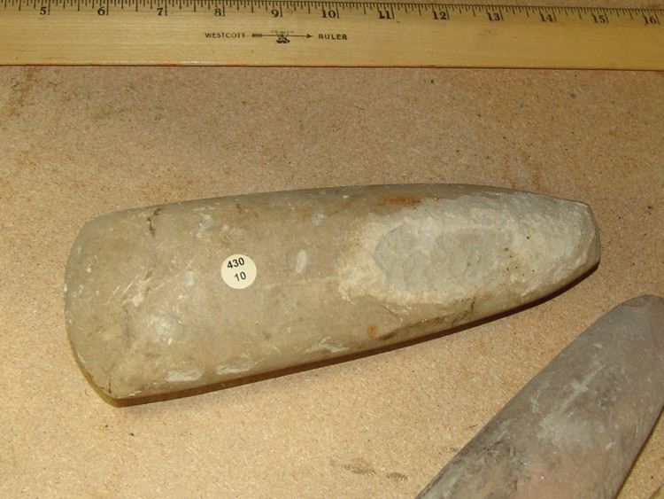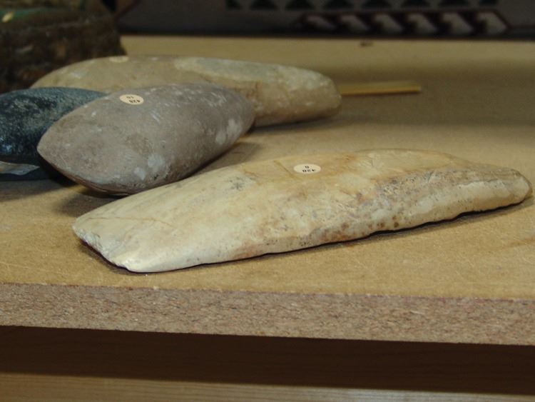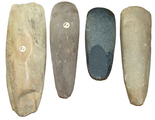 Group of four excavated stone tools mostly from southeast US including a huge flat chert blade and the other very nice chisels. Very good condition.,Pre Historic,Largest 9-1/2"