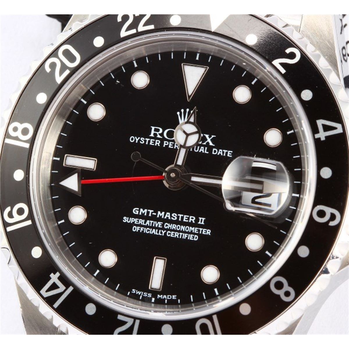 Model/Style-GMT-Master II 16710 Serial/Year-Random Features-Automatic movement, Quickset, scratch-resistant sapphire crystal, waterproof screw-down crown Case-Stainless steel w/ rotating bi-directional timing black bezel (40mm) Bracelet-Stainless steel Oyster #9107