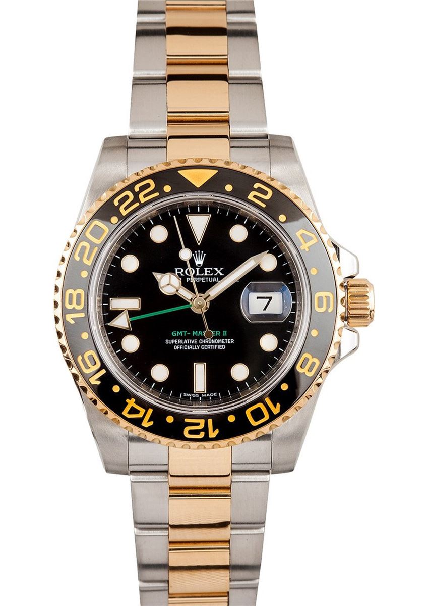 Model/Style-GMT Master II 116713 Serial/Year-Random Features-Automatic 3186 GMT movement w/ date and 2nd time zone, Quickset, scratch-resistant sapphire crystal, waterproof screw-down crown, rotating bi-directional timing bezel Case-Stainless steel w/ 18k yellow gold bezel with scratch-resistant rotatable ceramic bezel (40 mm) Bracelet-Stainless steel & 18k yellow gold Oysterlock bracelet w/ Easylink #9083
