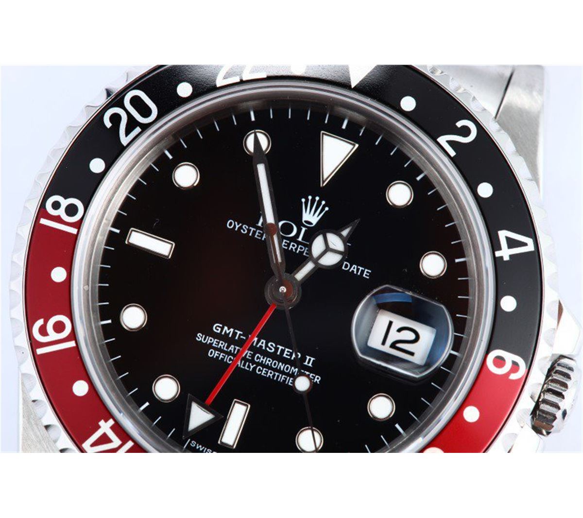 Model/Style-GMT-Master II - 16710 Serial/Year-Random Features-Automatic movement, Quickset, scratch-resistant sapphire crystal, waterproof screw-down crown Case-Stainless steel w/ red and black "Coke" bezel insert (40mm) Bracelet-Stainless steel Oyster w/ fliplock clasp #9112