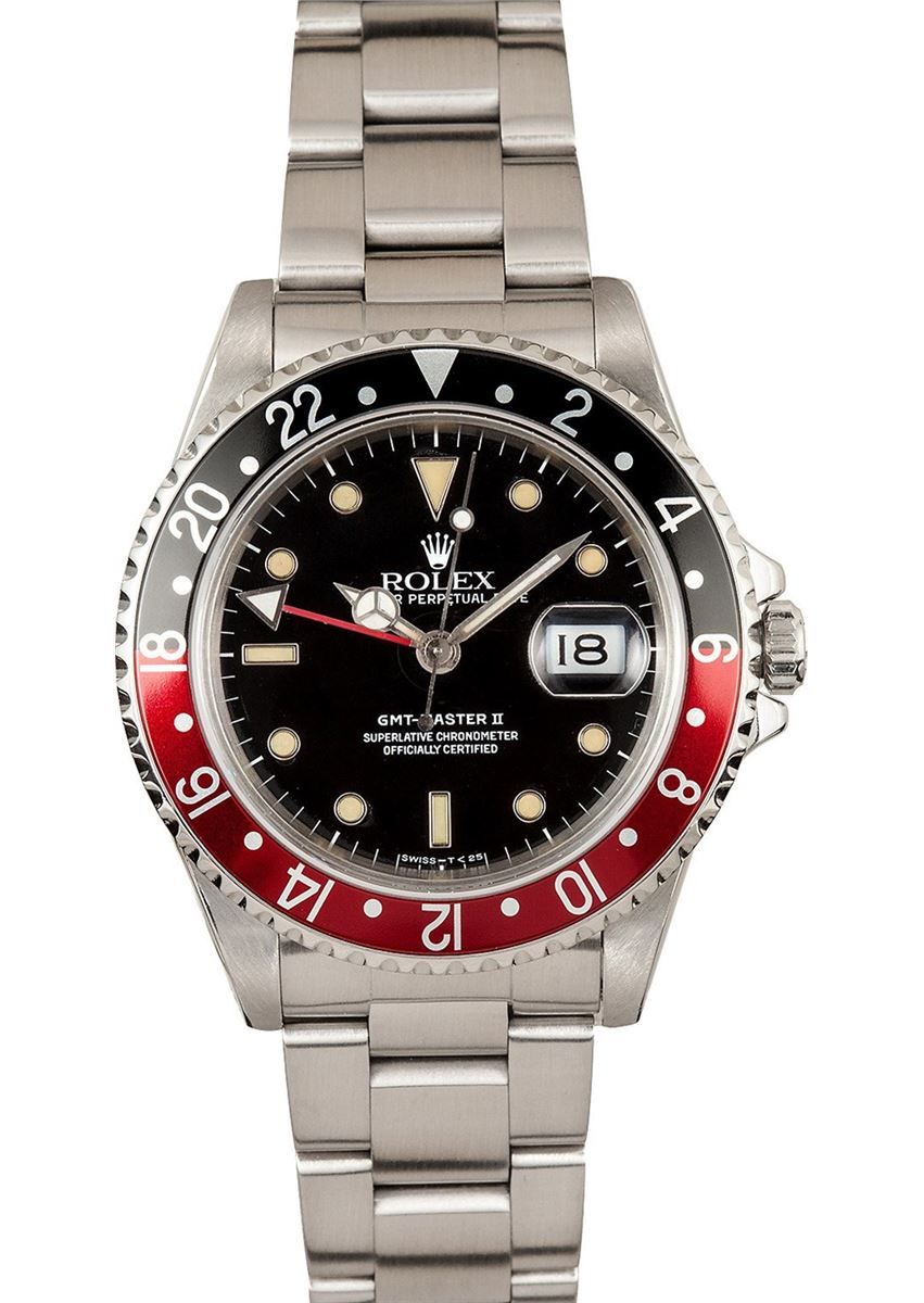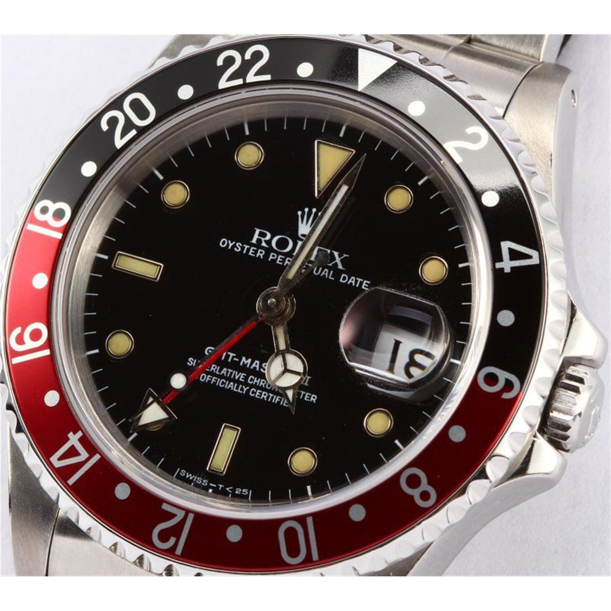Model/Style-GMT-Master II 16710 Serial/Year-Random Features-Automatic movement w/ date, Quickset, scratch resistant sapphire crystal Case-Stainless steel with red and black "coke" insert (40mm) Bracelet-Stainless steel Oyster #9090