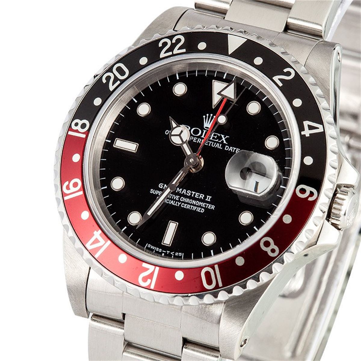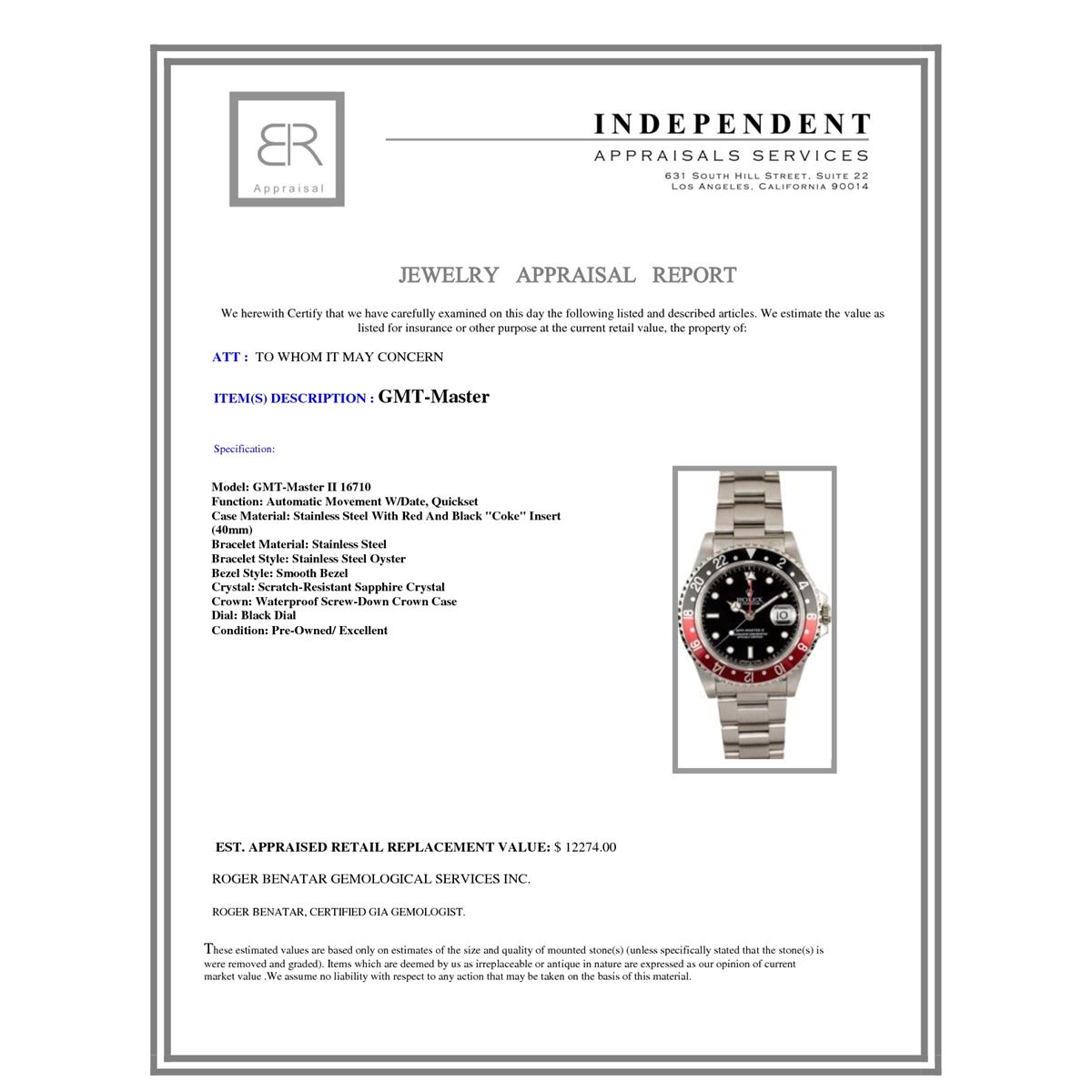 Model/Style-GMT-Master II 16710 Serial/Year-Random Features-Automatic movement w/ date, Quickset, scratch resistant sapphire crystal Case-Stainless steel with red and black "coke" insert (40mm) Bracelet-Stainless steel Oyster #9110