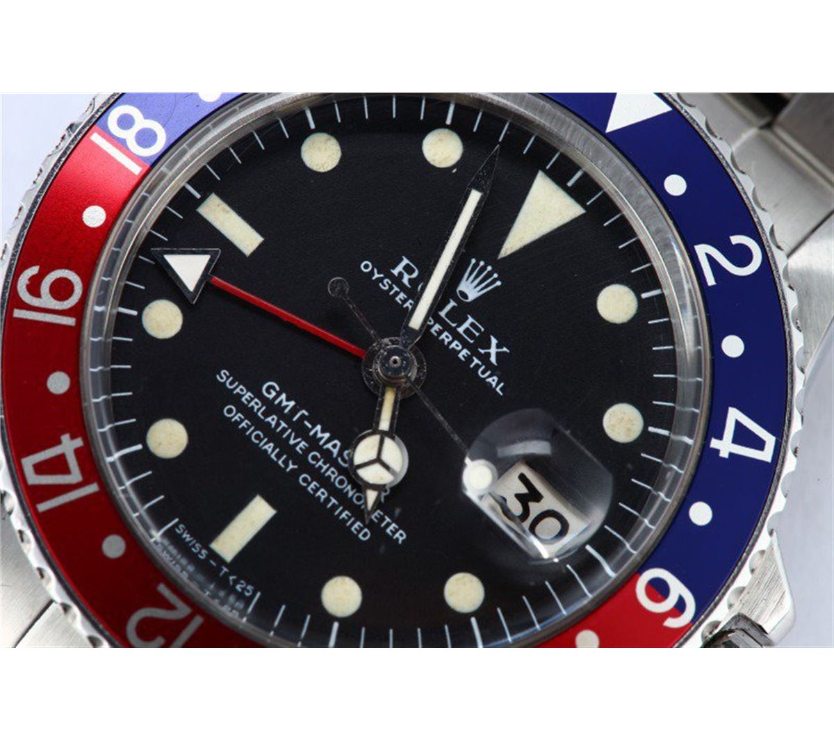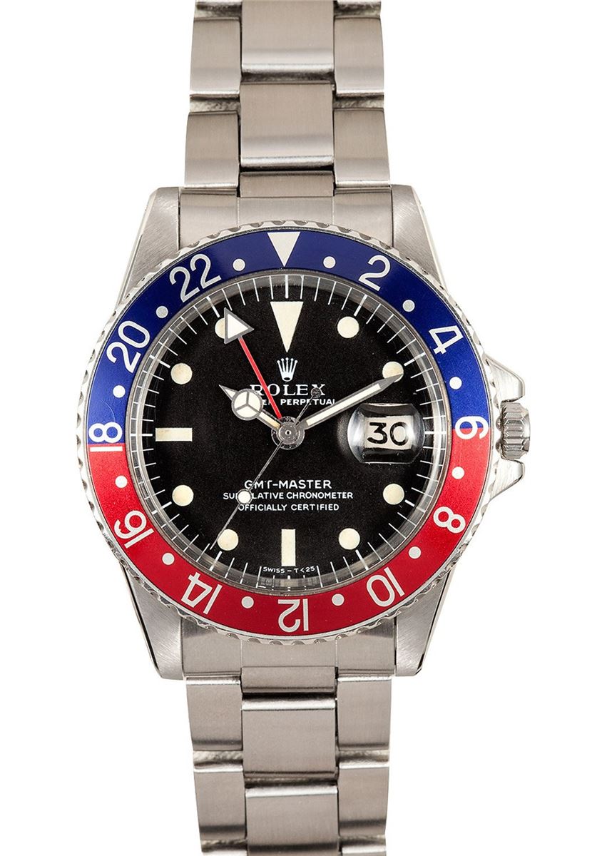 Model/Style-GMT-Master 1675 Serial/Year-Random Features-Automatic movement w/ date, gmt feature, pierced lugs Case-Beautiful stainless steel w/ sharp bevels Bracelet-7836 foldover Oyster link w/ some stretch, 13 links, 280 endlinks #9120