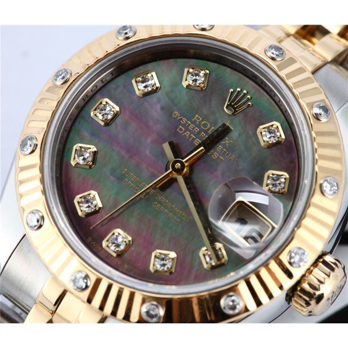Model/Style-Ladies Datejust 179313 Serial/Year-Random Features-Automatic 2235 movement w/ date, scratch-resistant sapphire crystal, waterproof screw-down crown, quickset Case-Stainless steel w/ 18k yellow gold and twelve diamond fluted bezel (26mm), inner reflector ring engraved w/ serial number Bracelet-Stainless Steel and 18k yellow gold Jubilee #9135