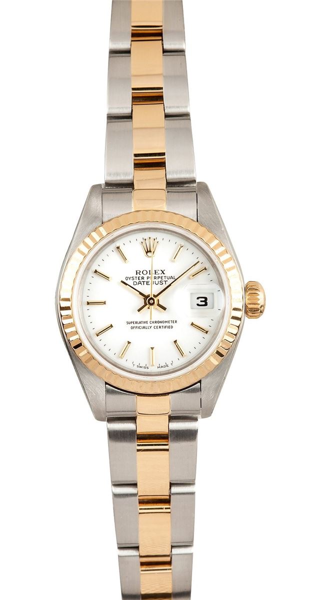 Model/Style-Ladies Datejust 79173 Serial/Year-Random Features-Automatic movement w/ date, Quickset, scratch resistant sapphire crystal, waterproof screw-down crown Case-Stainless steel w/18k gold fluted bezel (26mm) Bracelet-Stainless steel and 18k yellow gold Oyster #9145