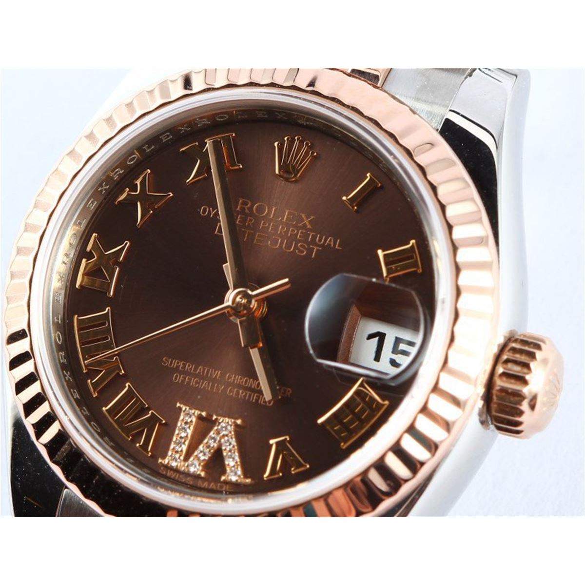 Model/Style-Ladies Datejust 179171 Serial/Year-Random Features-Automatic movement w/ date, Quickset, scratch-resistant sapphire crystal, waterproof screw-down crown Case-Stainless steel w/ 18k rose gold fluted bezel (26mm), inner reflector ring engraved w/ serial number Bracelet-Stainless steel and 18k rose gold Jubilee #9133