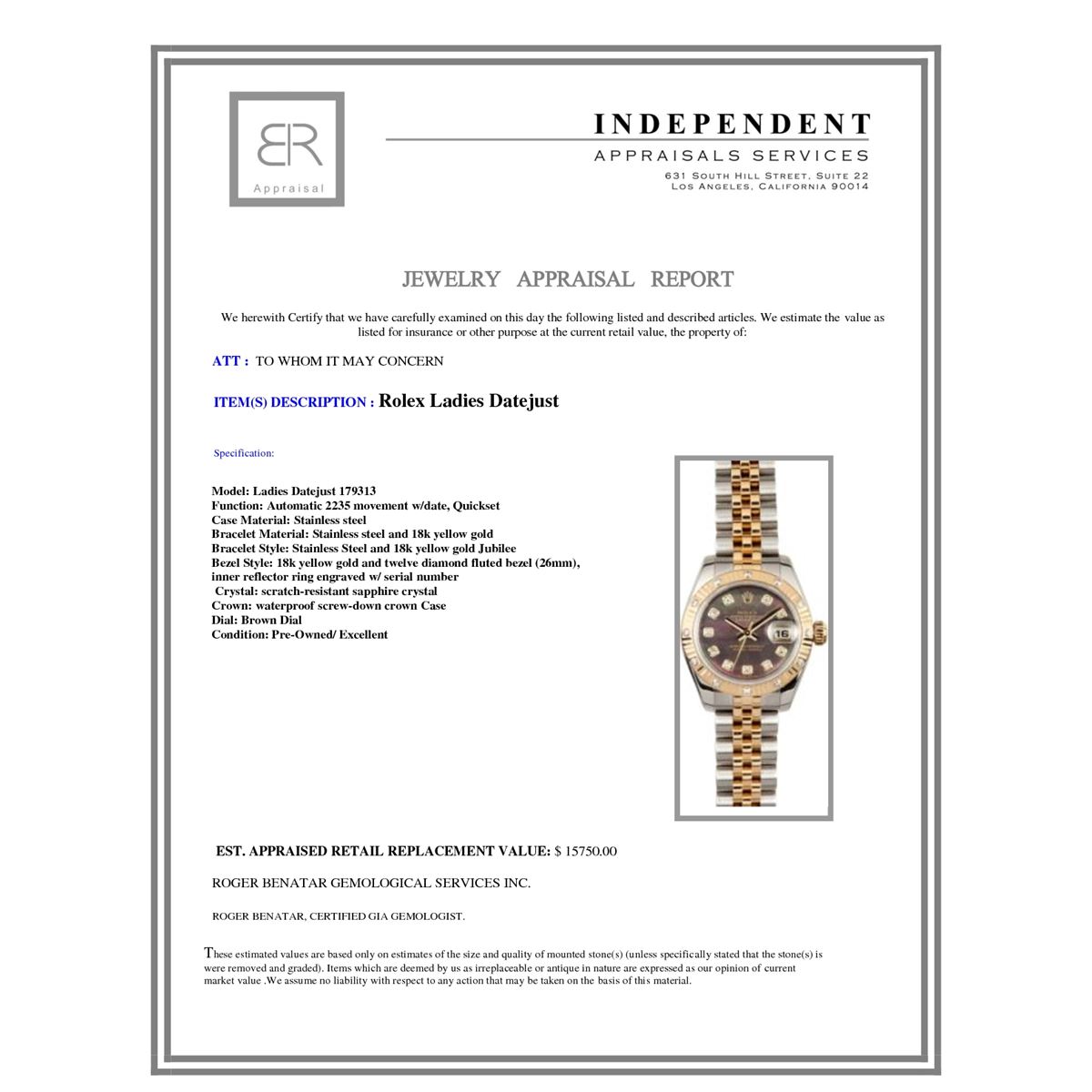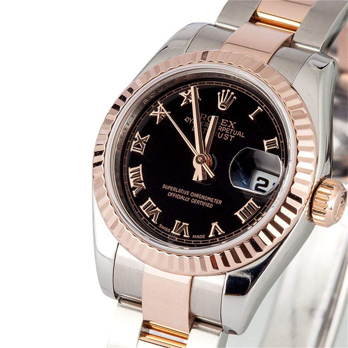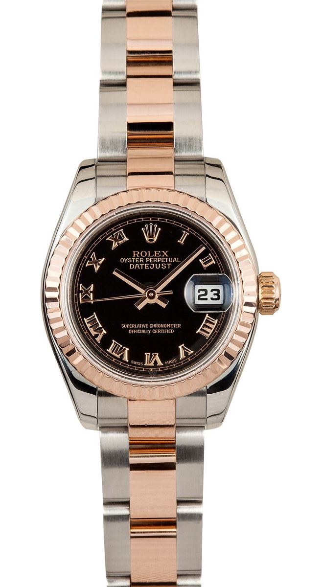 Model/Style-Ladies Datejust 179171 Serial/Year-Random Features-Automatic movement w/ date, Quickset, scratch-resistant sapphire crystal, waterproof screw-down crown Case-Stainless steel w/ 18k rose gold fluted bezel (26mm) Bracelet-Stainless steel and 18k rose gold Oyster #9134
