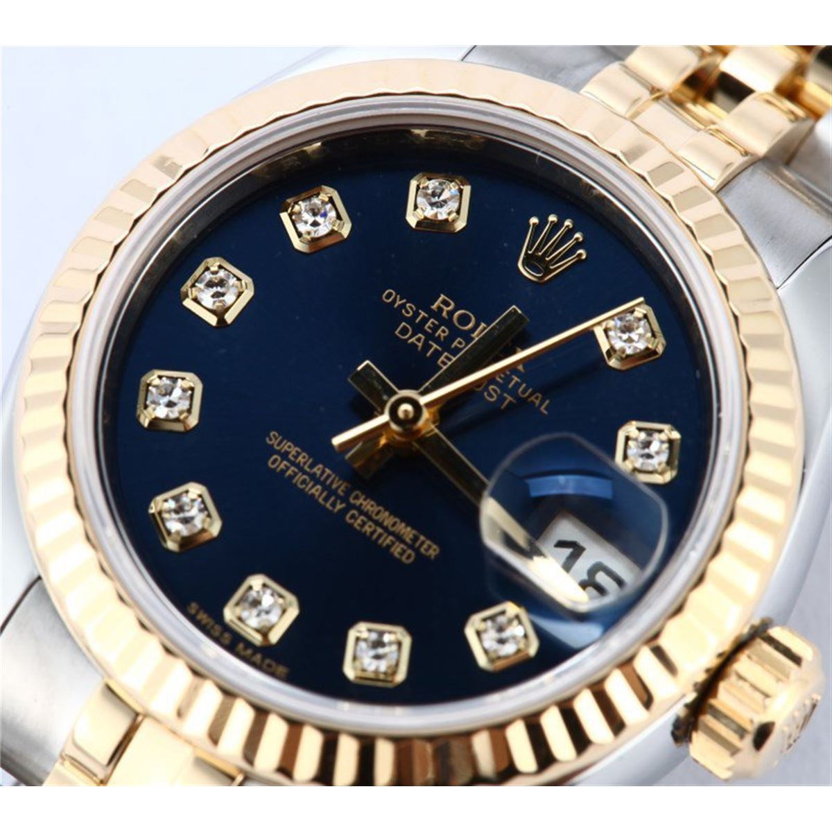 Model/Style-Ladies Datejust 179173 Serial/Year-Random Features-Automatic 2235 movement w/ date, Quickset, scratch-resistant sapphire crystal, waterproof screw-down crown Case-Stainless steel w/ 18k yellow gold fluted bezel (26mm) Bracelet-Stainless steel and 18k yellow gold Jubilee w/ hidden clasp #9138