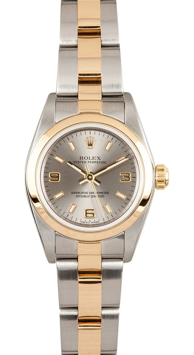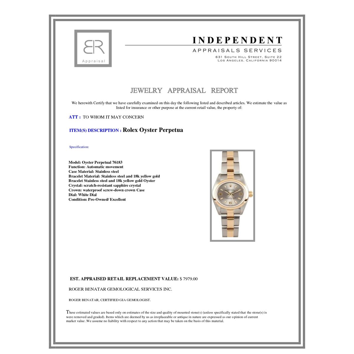 Model/Style-Oyster Perpetual 76183 Serial/Year-Random Features-Automatic movement, scratch-resistant sapphire crystal, waterproof screw-down crown Case-Stainless steel w/ 18k yellow gold smooth bezel Bracelet-Stainless steel and 18k yellow gold Oyster #9163