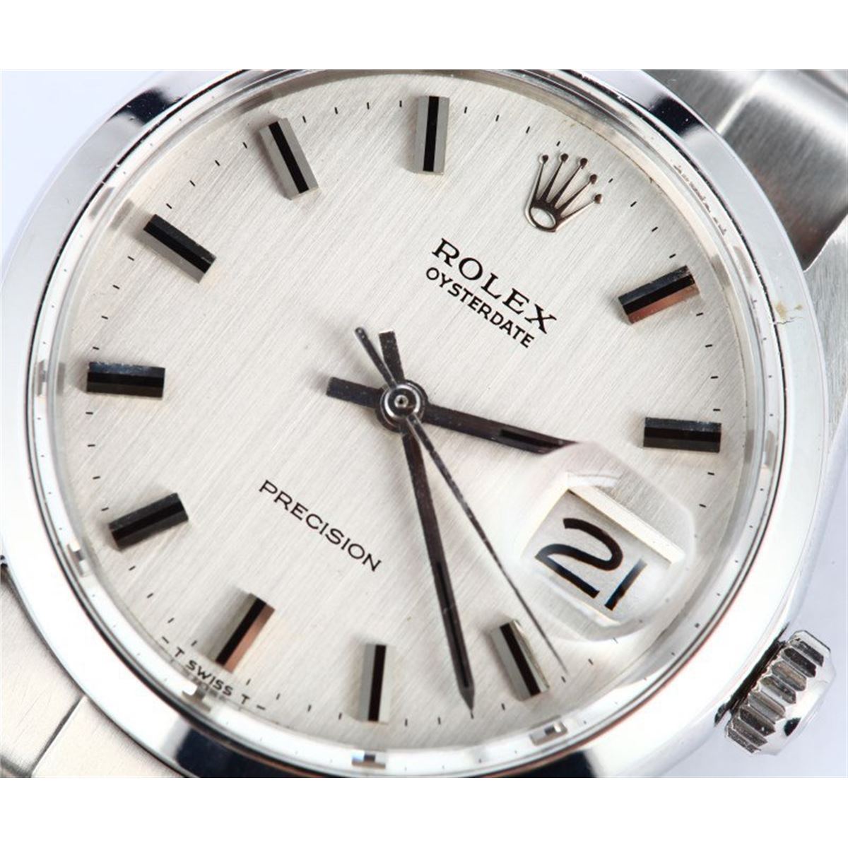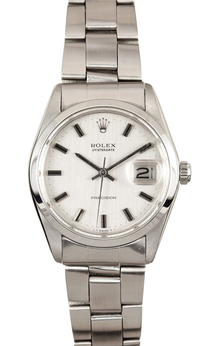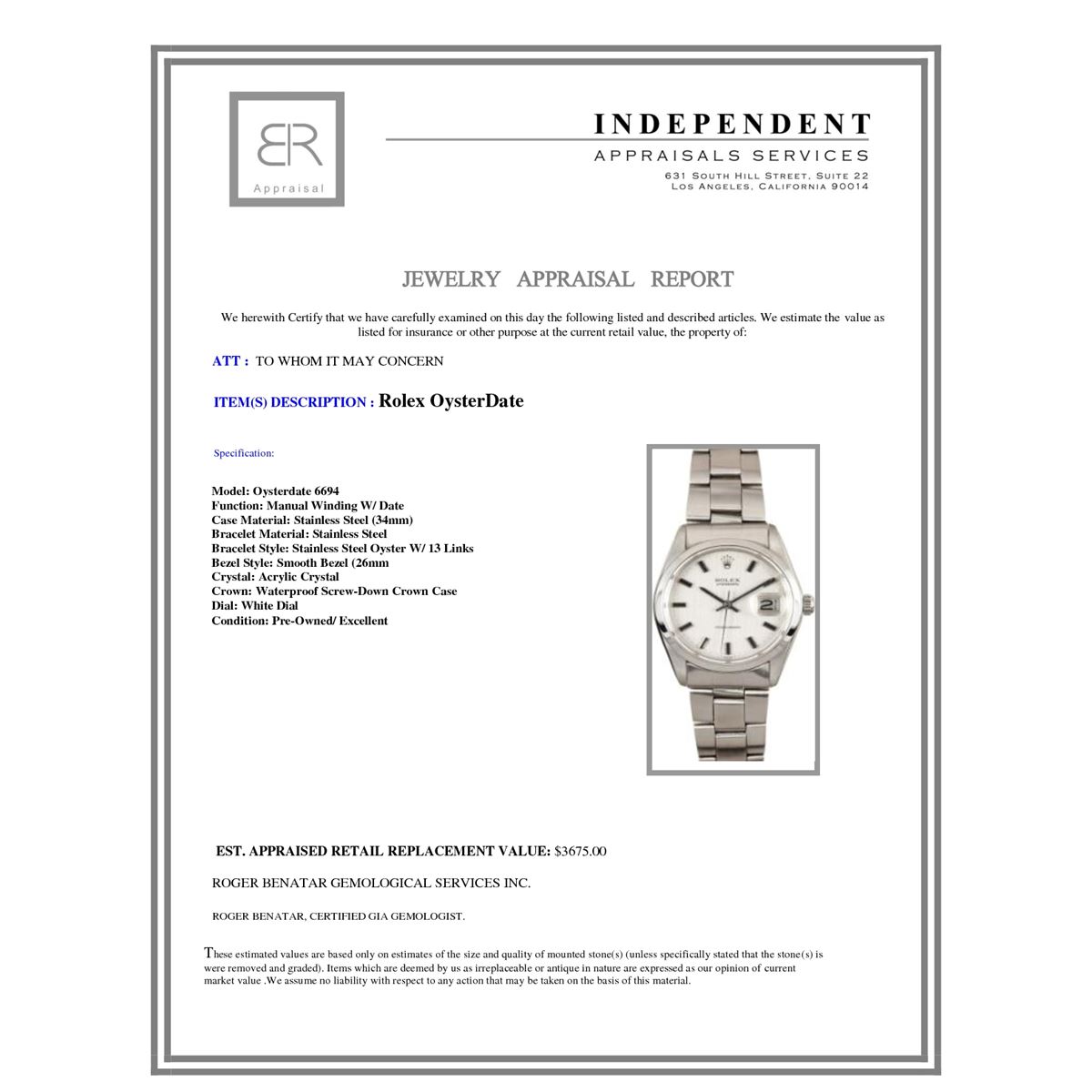 Model/Style-OysterDate 6694 Serial/Year-Random Features-Manual winding w/ date, acrylic crystal, waterproof screw-down crown Case-Stainless steel (34mm) w/ smooth bezel Bracelet-Stainless Steel Oyster w/ 13 links #9152