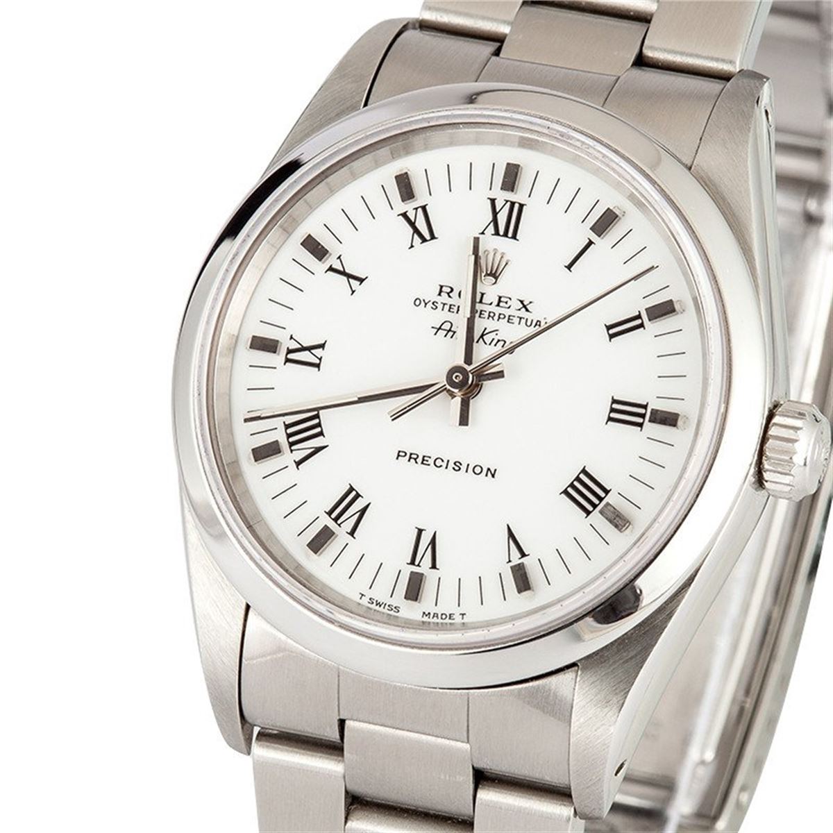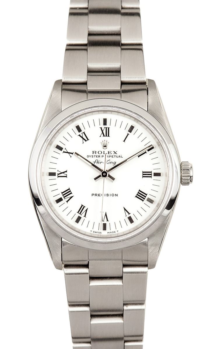 Model/Style-Air-King - 14000 Serial/Year-Random Features-Automatic 3000 movement, 27 jewels, scratch-resistant sapphire crystal, waterproof screw-down crown Case-Stainless steel with smooth bezel (34mm) Bracelet-Stainless steel Oyster #9004