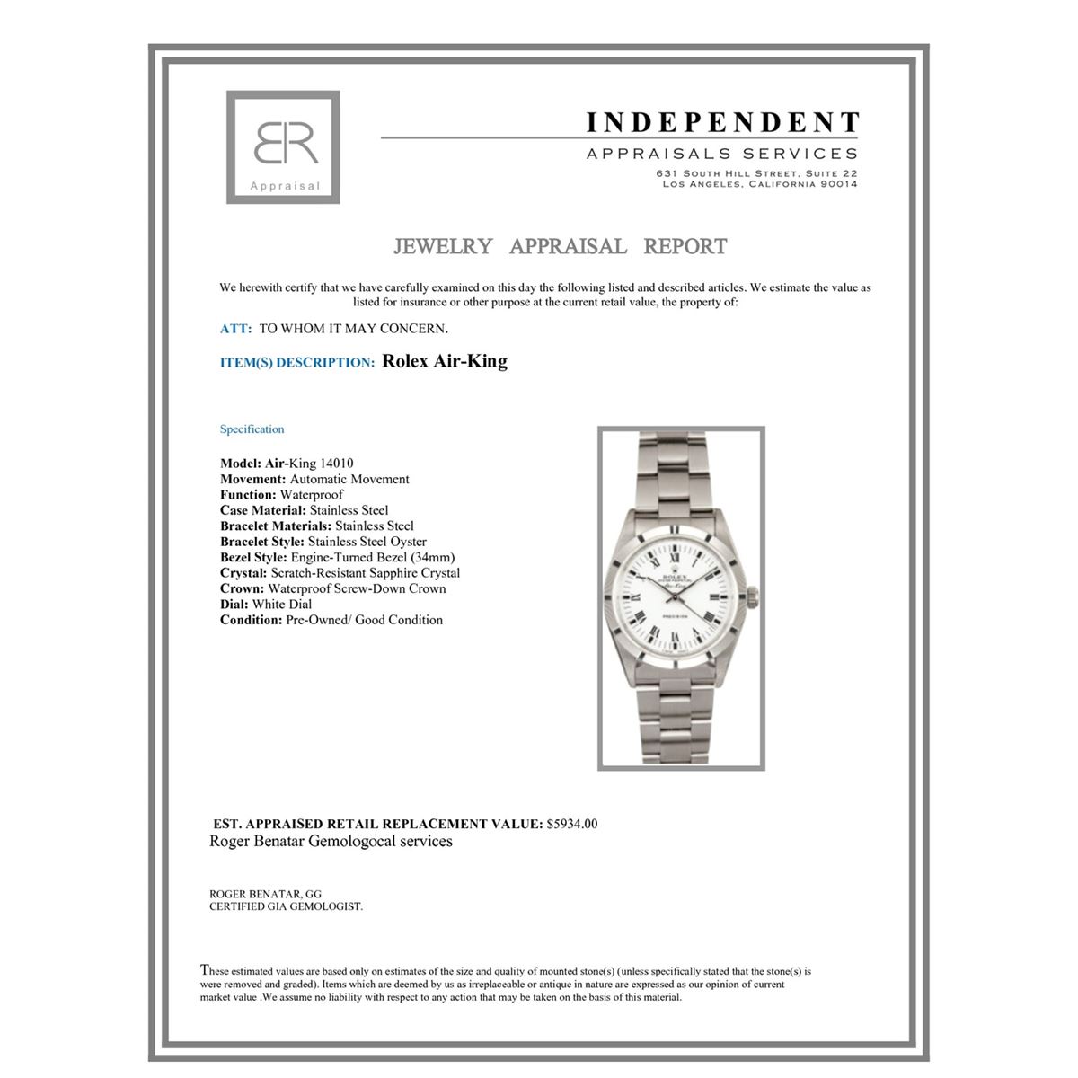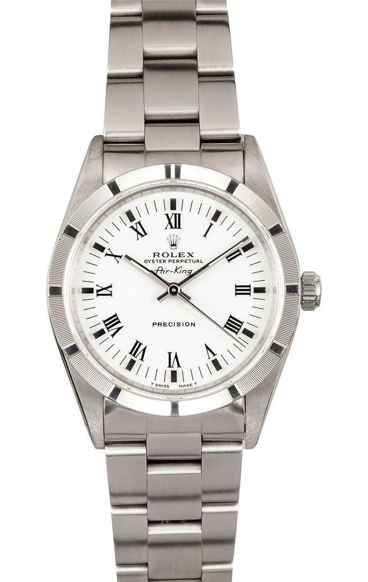 Model/Style-Air-King 14010 Serial/Year-Random Features-Automatic movement, scratch-resistant sapphire crystal, waterproof screw-down crown Case-Stainless steel w/ engine-turned bezel (34mm) Bracelet-Stainless steel Oyster #9005