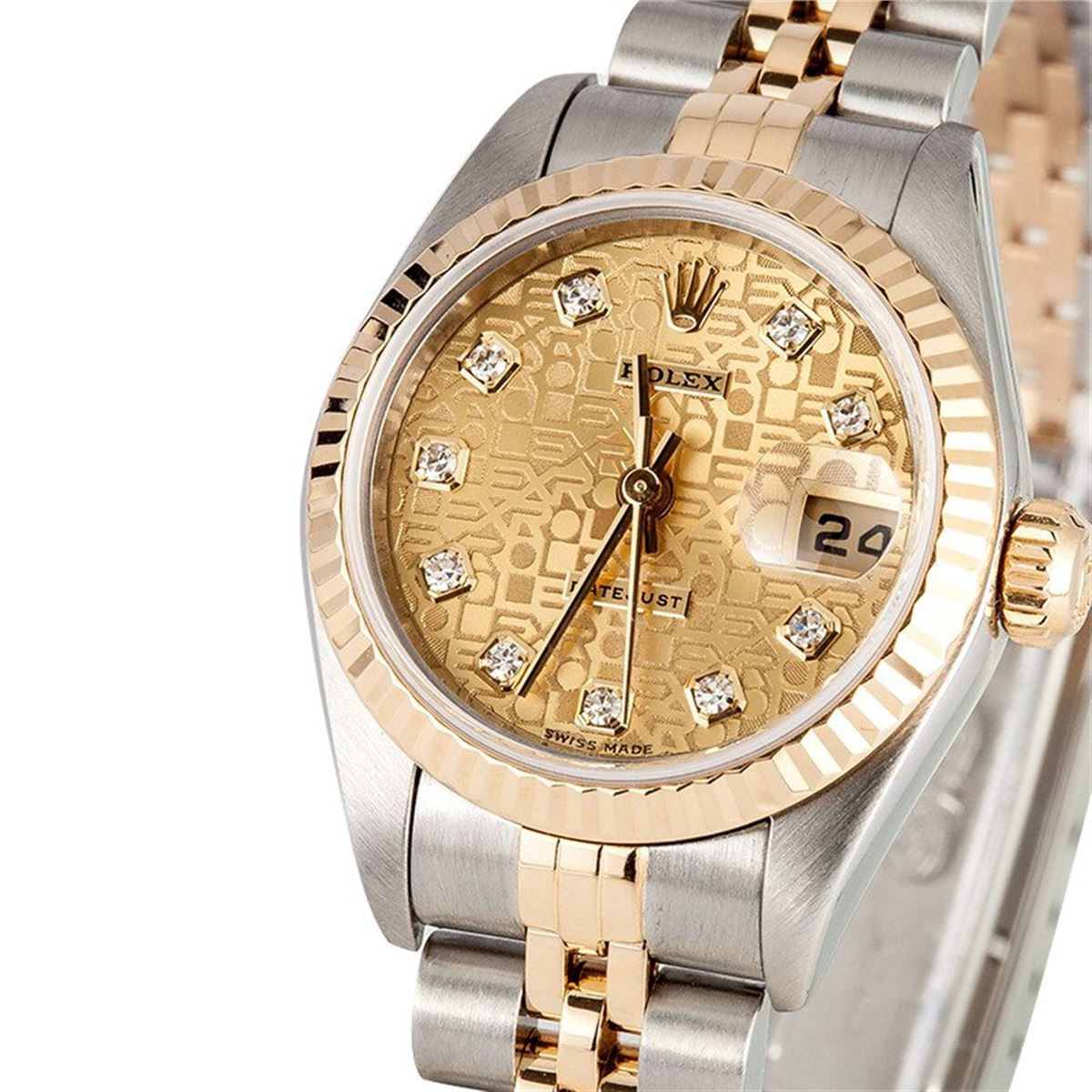 Model/Style-Datejust 79173 Serial/Year-Random Features-Automatic movement w/ date, 31 jewels, Quickset, scratch resistant sapphire crystal, waterproof screw-down crown Case-Stainless steel w/ 18k yellow gold fluted bezel Bracelet-Stainless Steel and 18k yellow gold Jubilee #9038