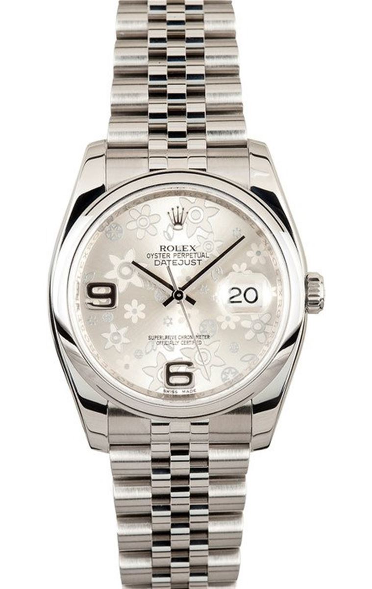 Model/Style-Datejust 116200 Serial/Year-Random Features-Automatic movement w/ date, Quickset, scratch-resistant sapphire crystal, waterproof screw-down crown Case-Stainless steel w/ smooth bezel (36mm), inner-reflector ring w/ serial engraved Bracelet-Stainless Steel Jubilee #9024