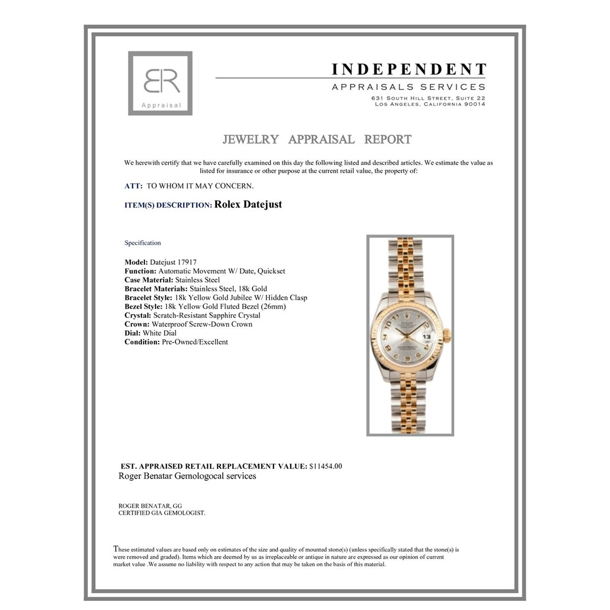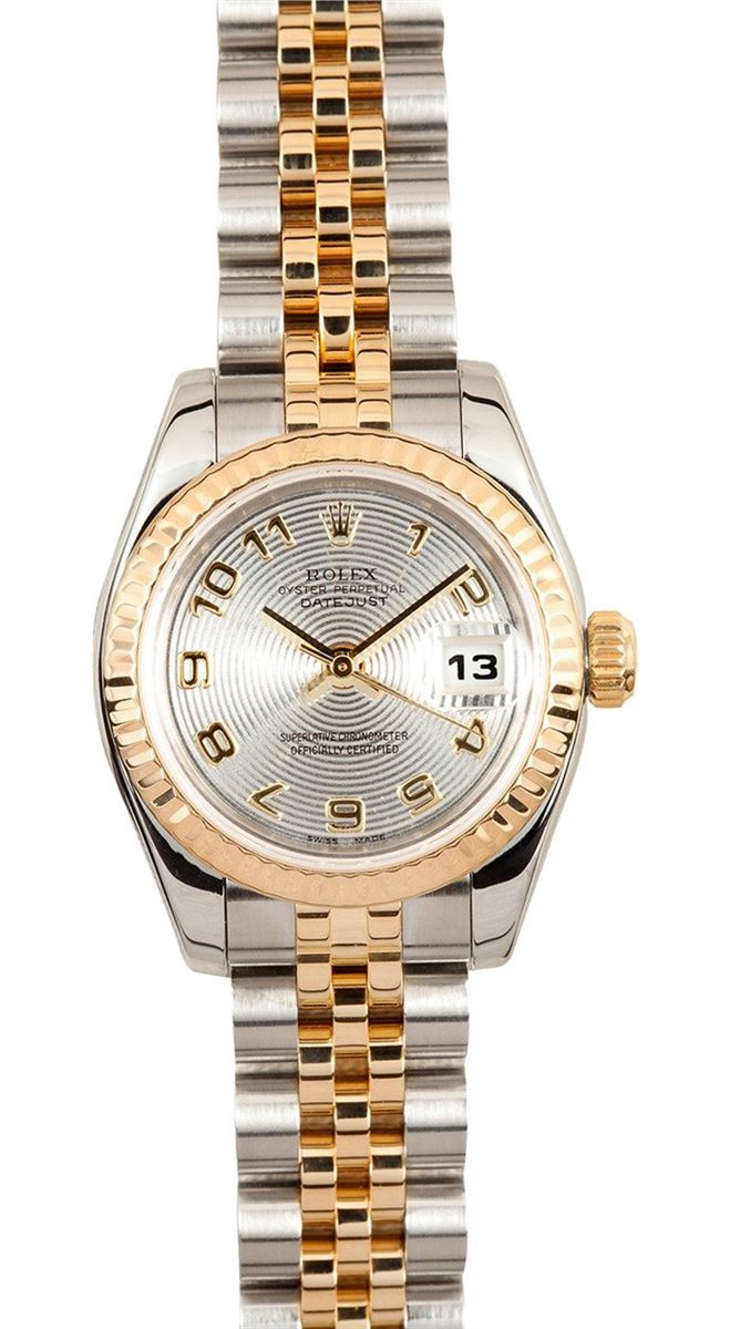 Model/Style-DateJust 179173 Serial/Year-Random Features-Automatic movement w/ date, Quickset, scratch-resistant sapphire crystal, waterproof screw-down crown Case-Stainless steel w/ 18k yellow gold fluted bezel (26mm) Bracelet-Stainless steel and 18k yellow gold Jubilee w/ hidden clasp #9036