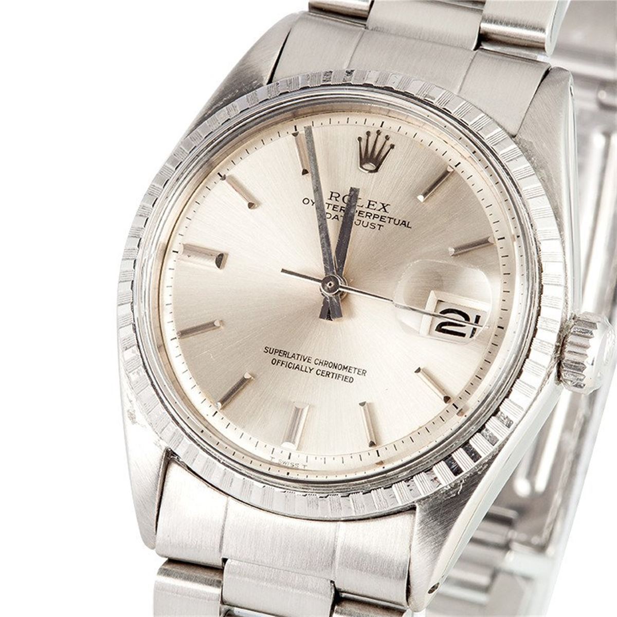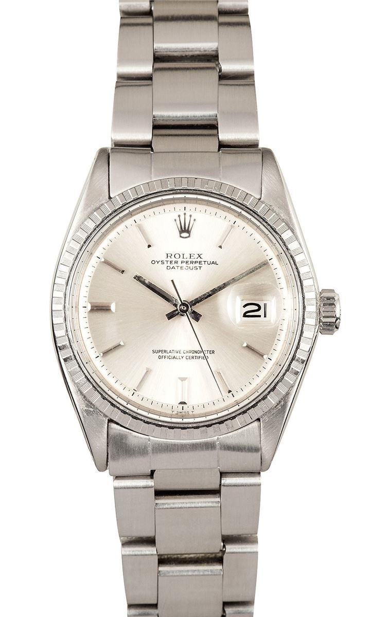 Model/Style-DateJust 1603 Serial/Year-Random Features-Automatic 1560 movement w/date, acrylic crystal, waterproof screw-down crown Case-Stainless steel w/ engine turned bezel (36mm) Bracelet-Stainless steel Oyster #9020