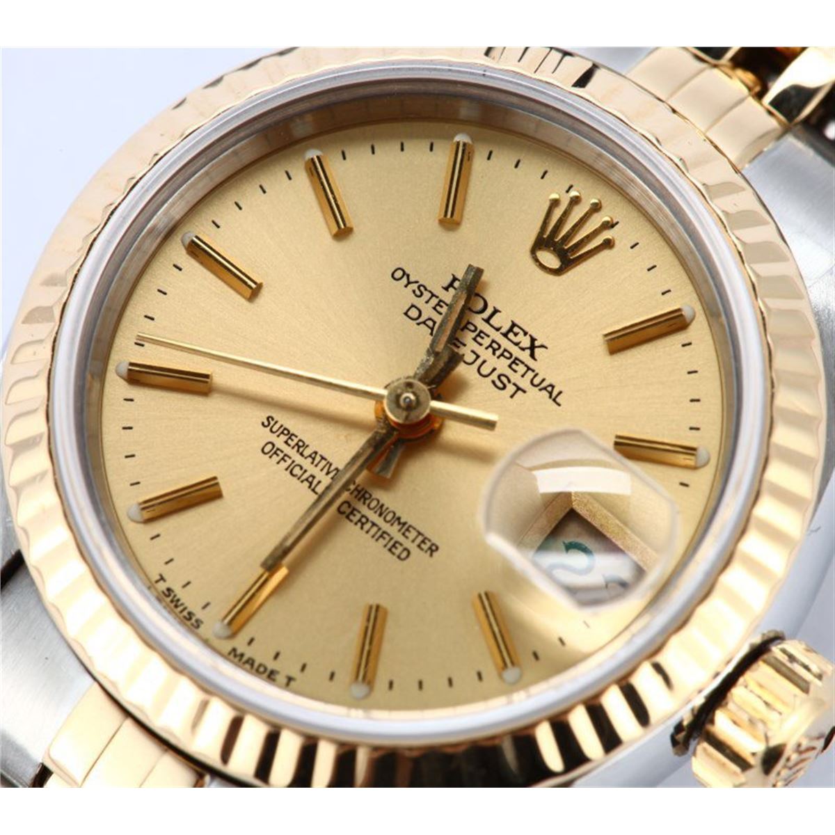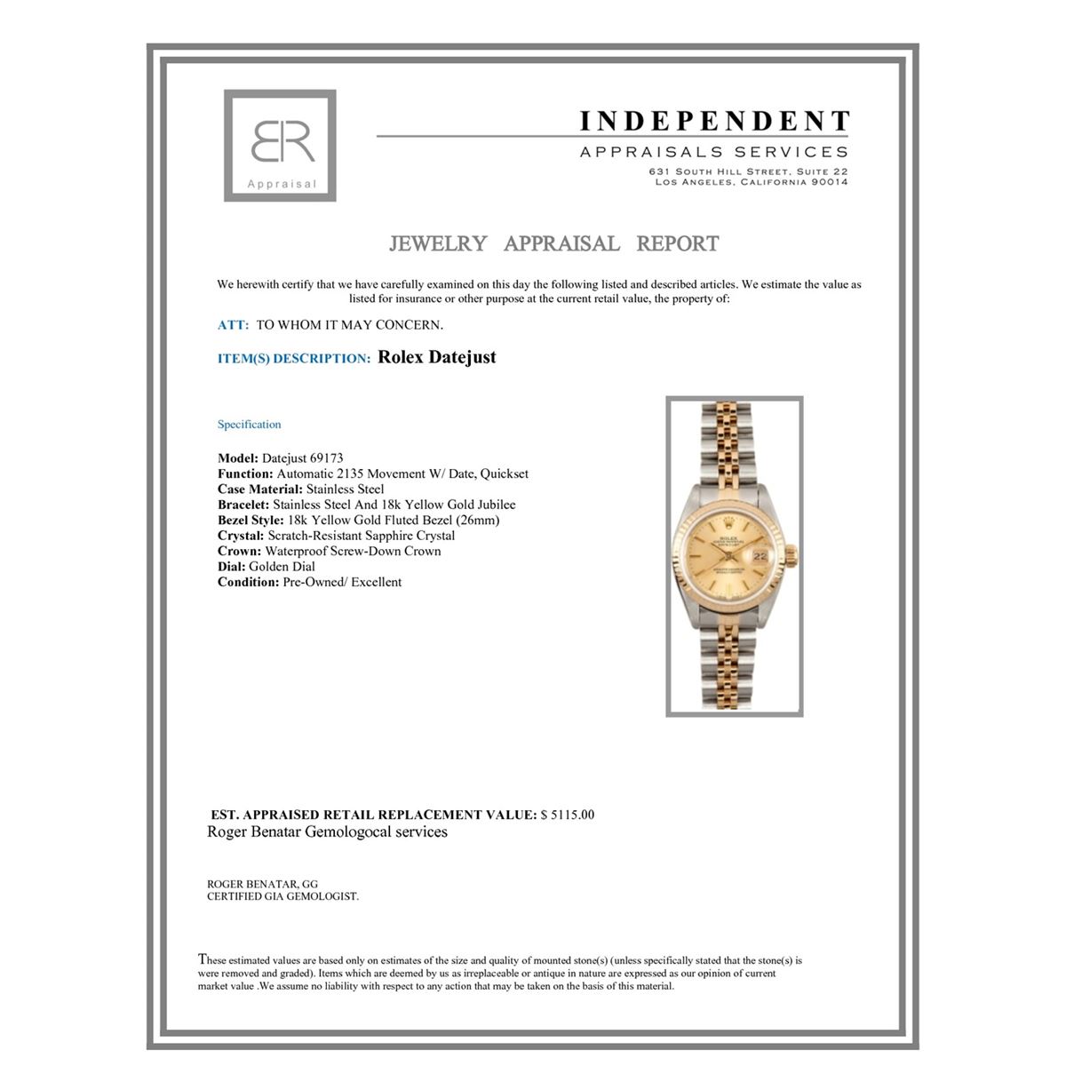 Model/Style-Datejust 69173 Serial/Year-Random Features-Automatic 2135 movement w/ date, Quickset, scratch-resistant sapphire crystal, waterproof screw-down crown Case-Stainless steel w/ 18k yellow gold fluted bezel (26mm) Bracelet-Stainless steel and 18k yellow gold Jubilee #9039