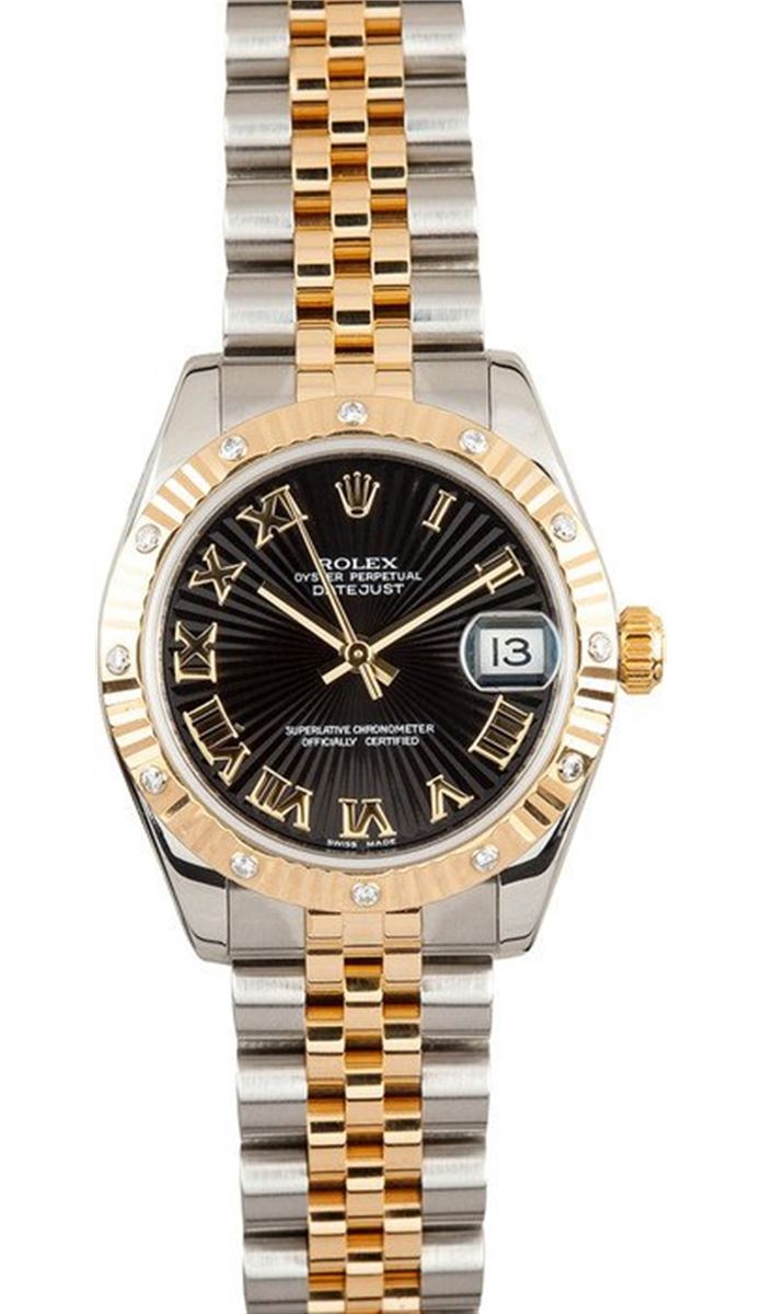 Model/Style-DateJust 178313 Serial/Year-Random Features-Automatic movement w/ date, 31 jewels, Quickset, scratch-resistant sapphire crystal, waterproof screw-down crown Case-Midsize Stainless steel w/ 18k yellow gold 12 diamond fluted bezel (31 mm), inner reflector ring engraved w/ serial number Bracelet-Stainless steel and 18k yellow gold Jubilee w/ hidden clasp #9023