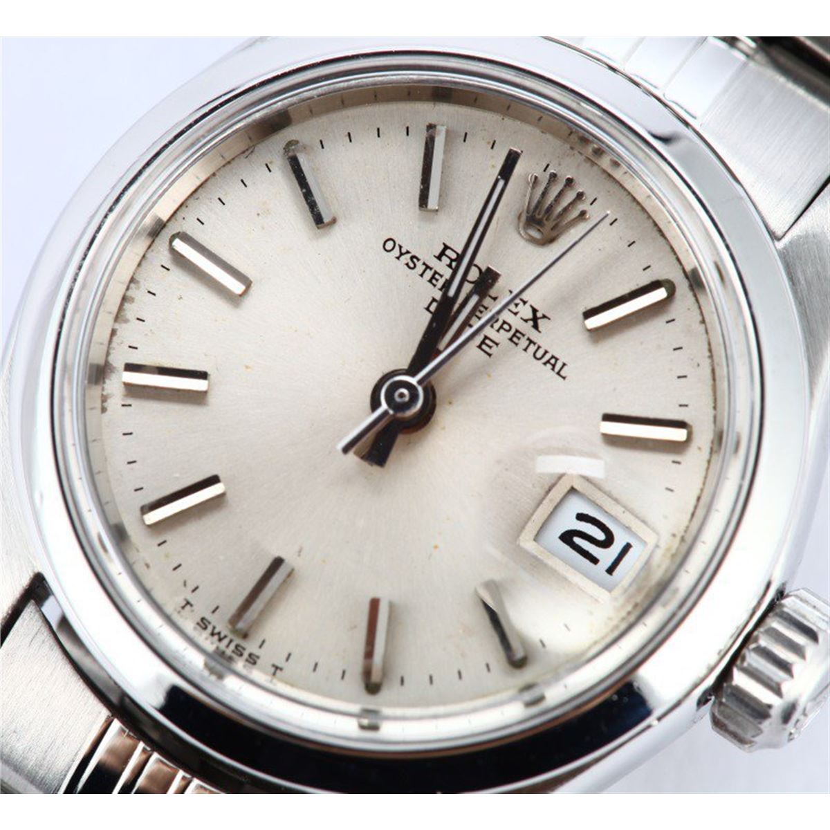 Model/Style-Date 6916 Serial/Year-Random Features-Automatic movement w/ date, acrylic crystal, waterproof screw-down crown Case-Stainless steel (26mm) w/ smooth bezel Bracelet-Stainless steel Jubilee #9016