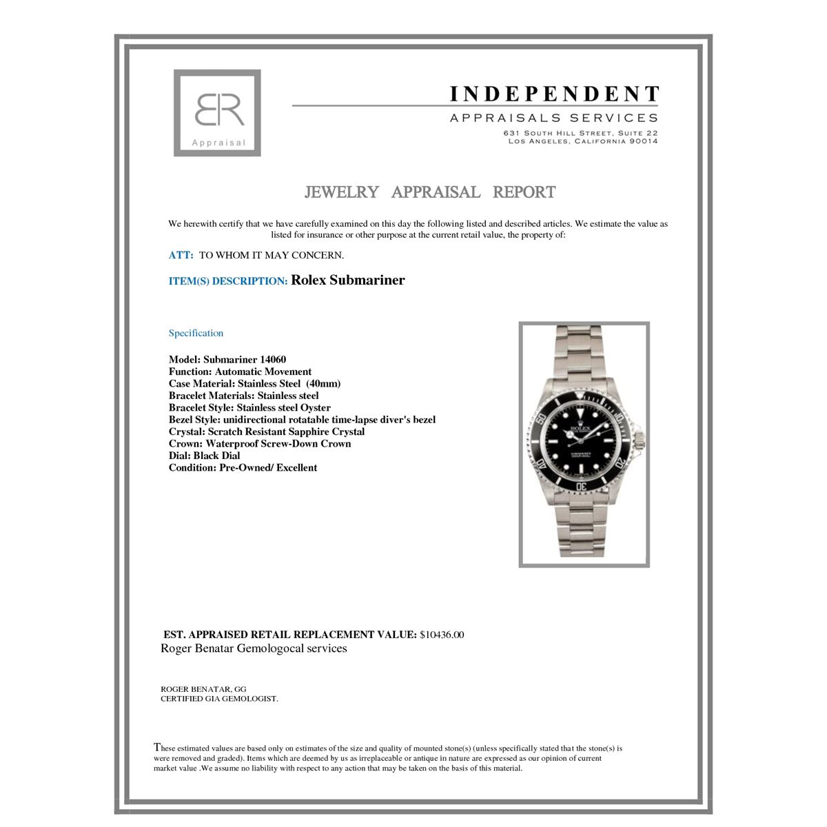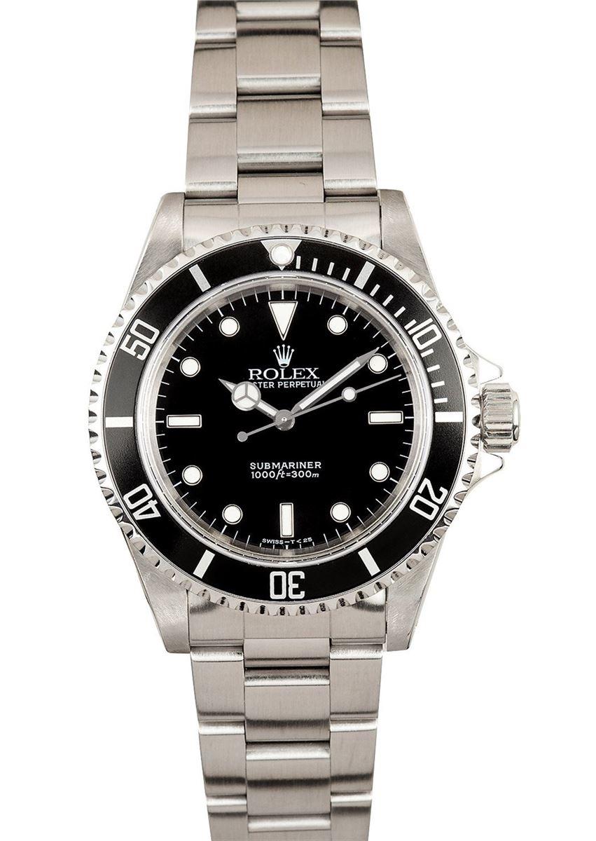 Model/Style-Submariner 14060 Serial/Year-Random Features-Automatic movement, waterproof screw-down crown, unidirectional rotatable time-lapse diver's bezel, scratch-resistant sapphire crystal Case-Stainless steel (40 mm) Bracelet-Stainless steel Oyster #9218