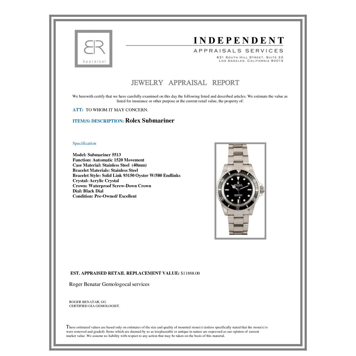 Model/Style-Submariner 5513 Serial/Year-Random Features-Automatic 1520 movement, waterproof screw-down crown, acrylic crystal Case-Stainless steel case (40mm). Case is in excellent condition. Water resistant with screw down crown. Bracelet-Solid link 93150 oyster w/580 endlinks. Bracelet is in excellent condition with light stretch. #9282