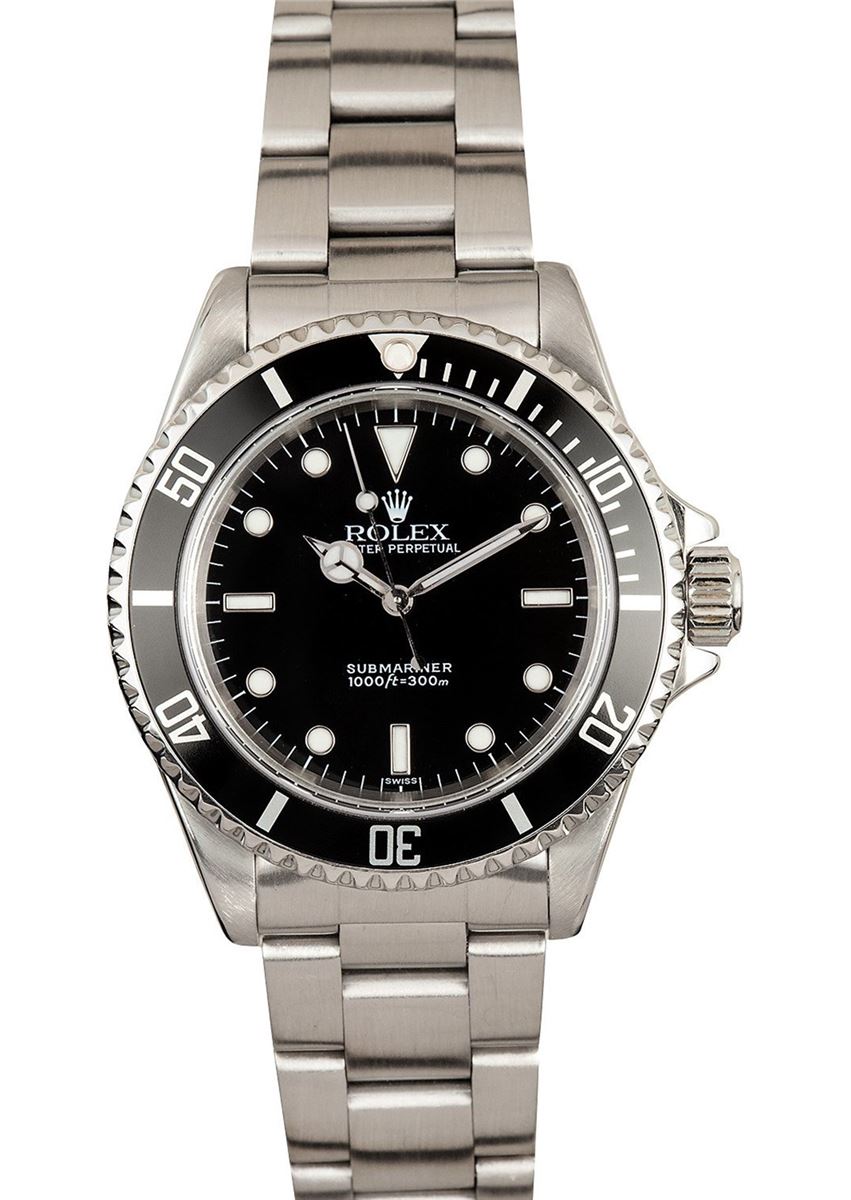 Model/Style-Submariner 14060 Serial/Year-Random Features-Automatic movement, waterproof screw-down crown, unidirectional rotatable time-lapse diver's bezel, scratch-resistant sapphire crystal Case-Stainless steel (40 mm) Bracelet-Stainless steel Oyster #9192