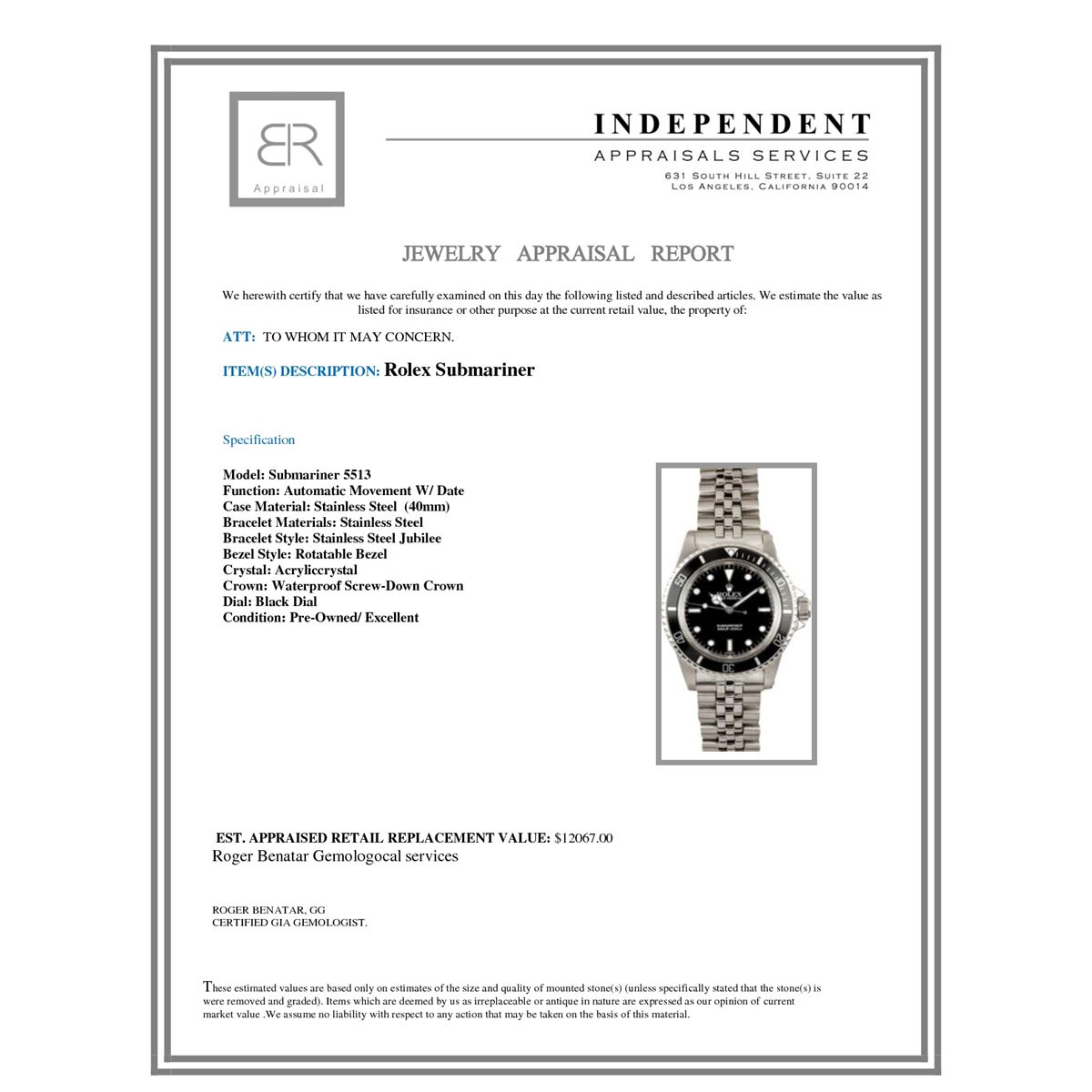 Model/Style-Submariner 5513 Serial/Year-Random Features-Automatic movement w/ date, water resistant screw-down crown, acrylic crystal, rotatable bezel Case-Stainless steel case (40mm). Case is in excellent condition with water resistant screw down crown. Bracelet-Stainless steel jubilee bracelet. Bracelet is in mint condition with light stretch consistent with age. #9280