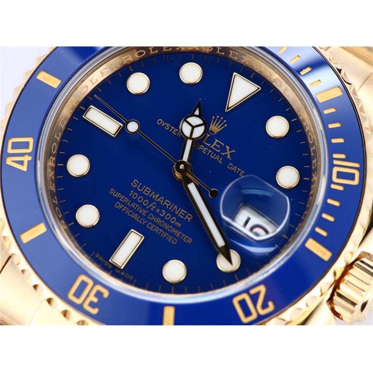 Model/Style-Submariner 116618 Serial/Year-Random Features-Automatic movement w/ date, waterproof screw-down crown, unidirectional rotatable diver's bezel, scratch-resistant sapphire crystal Case-18k yellow gold (40mm) w/ blue and gold ceramic bezel, inner reflector ring engraved w/ serial number Bracelet-18k yellow gold Oyster w/ Glidelock clasp #9241