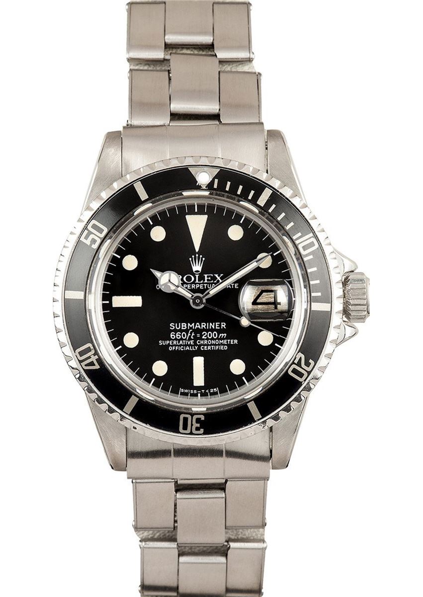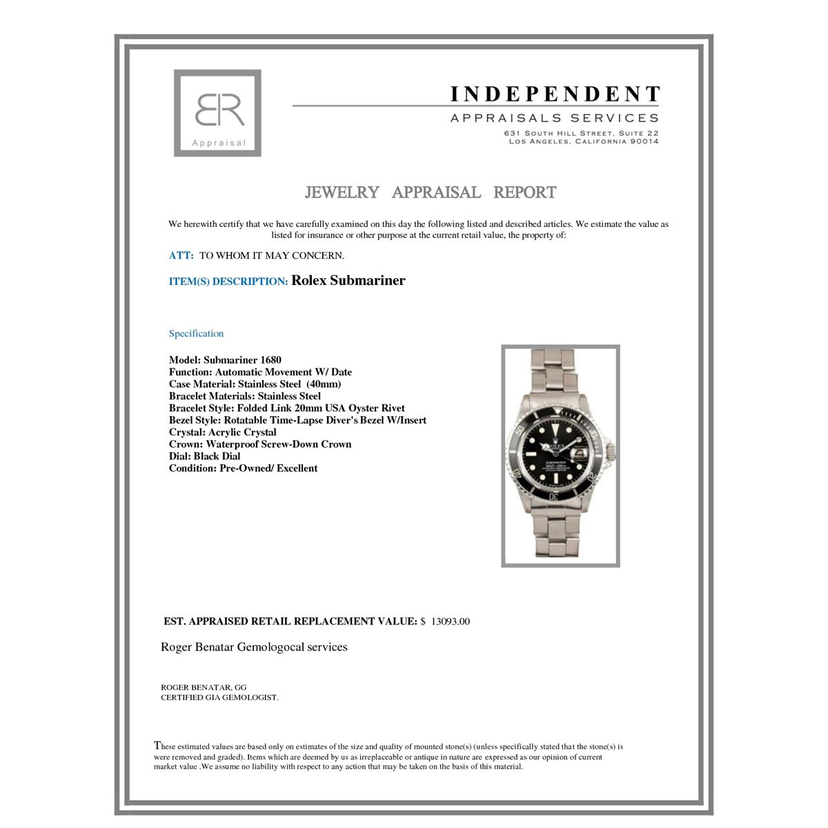 Model/Style-Submariner 1680 Serial/Year-Random Features-Automatic movement w/ date, waterproof screw-down crown, rotatable time-lapse diver's bezel w/insert, acrylic crystal. Case-Stainless steel case (40mm). Case is in mint condition with original fat font insert. Water resistant case with screw down crown. Bracelet-Folded link 20mm USA oyster rivet. Bracelet shows medium stretch and is in excellent condition. #9290