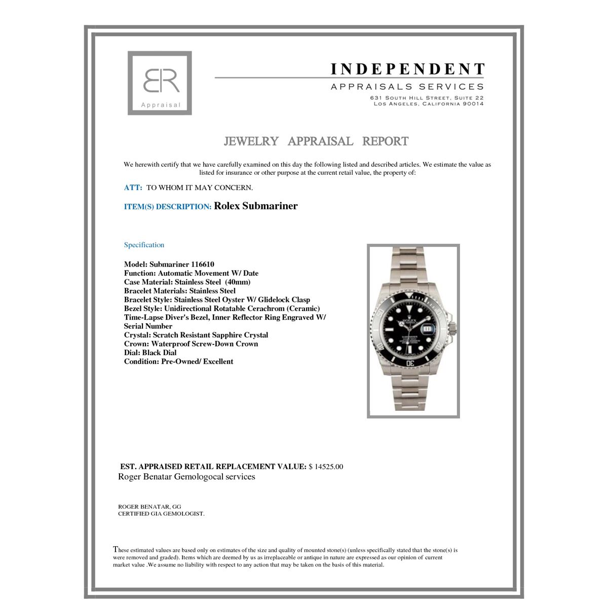 Not all jewelry, watches or loose stones are appraised and the appraisals are provided for bidders only in certain instances at the discretion of the Company. Appraisals, if any should be use to verify gemstone and or metal weights. The appraisals should not be used for valuation of any item. No guarantee, warranty or representation is intended by the Company in any appraisal. All dimensions and weights of such lots are approximate and are consistent with standards and practices in the industry. Condition reports are provided as a service to the prospective buyer. Bidders should take note that such descriptions are not warranties and that watches may need general service, change of battery or further repairs for which the buyer is solely responsible